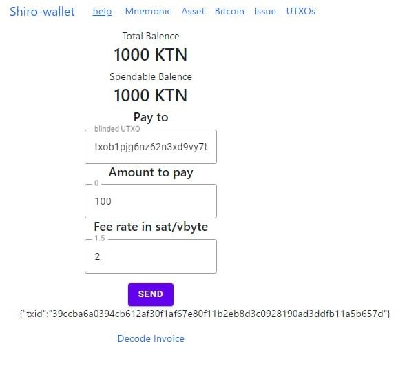 Shiro Walletは現状α版としてテストネットで公開されていますが、RGBウォレットの作成、RGB上でのトークン発行、トークンの送受信などの機能をすでに実際に実行することが可能です。