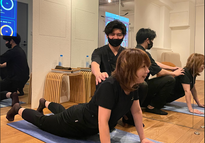 理学療法士が独自開発した日本で唯一のプログラムで、身体の本質的な課題を数値ベースで見える化。最新技術のミラーディスプレイも導入し、施術前後で自分の身体がどう変わっていったかも共有します。理想的な数値を目指すべく、一人一人に最適なアプローチを行います。