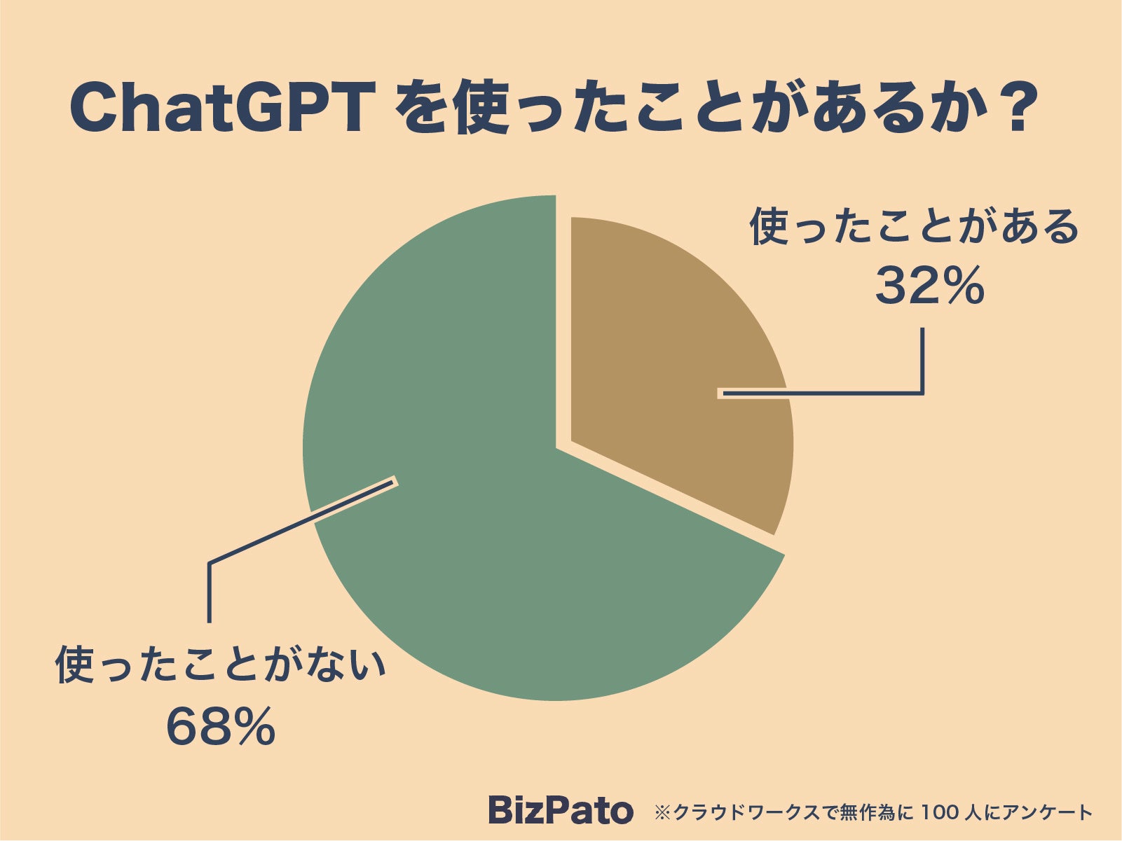 「ChatGPTを今まで一度でも使用したことがありますか?」という質問に対して、68%の人が「使ったことがない」と回答。このことから、まだまだ日常生活の中に浸透しているとは言いにくい現状です。