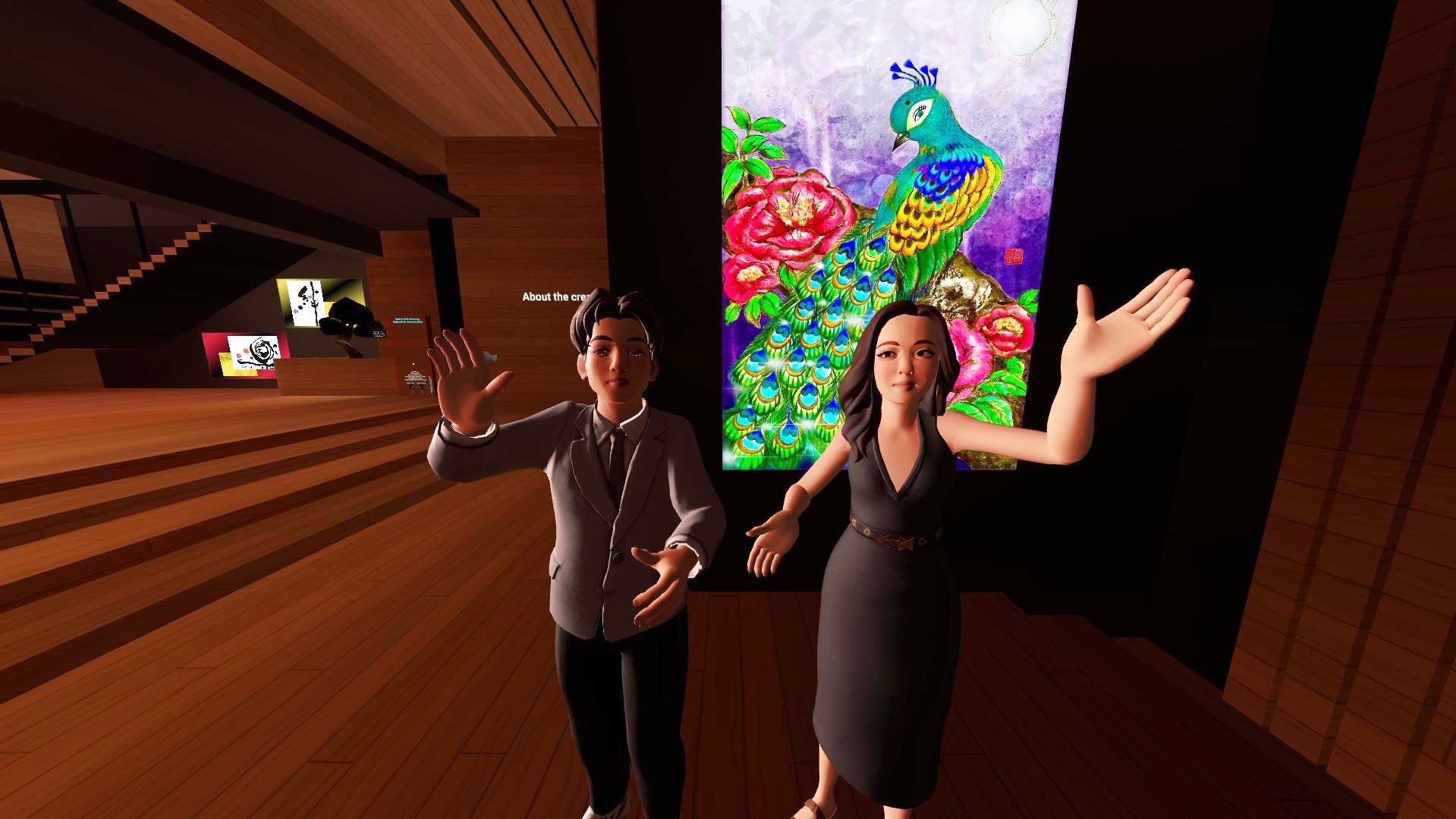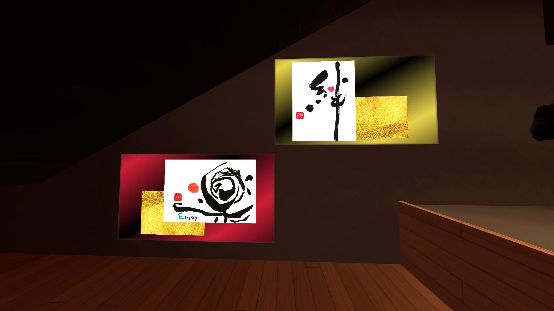 空間の至るところにVisit Japan Metaverseが手掛けている独自のアートワークを展示し、雰囲気を一層引き立てています。次世代アーティスト「道湖」による京都の高貴な鳥「麻呂鳥®」や、雅な抽象アート「アンビエント・キャンバス」、京都出身のF.Kojimaによる創作紋様、デザイン書道、写真作品、ポスターなど、多彩なアートをギャラリーのようにお楽しみいただけます。