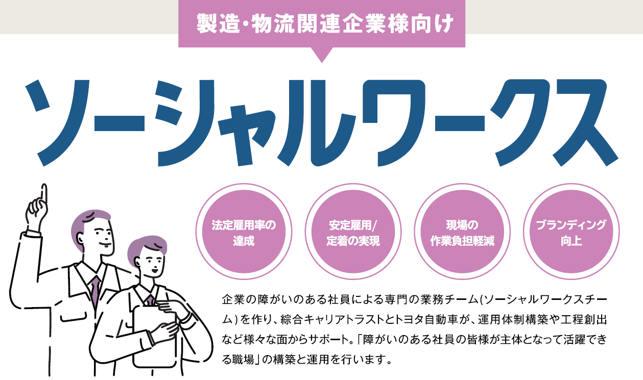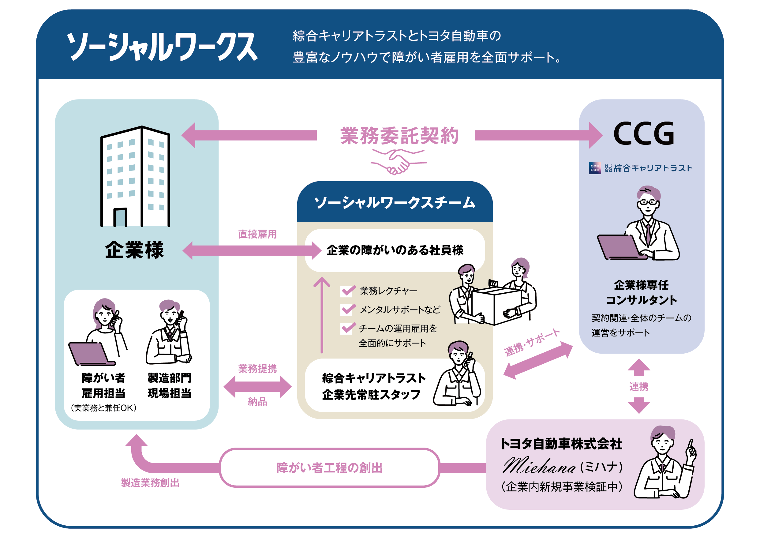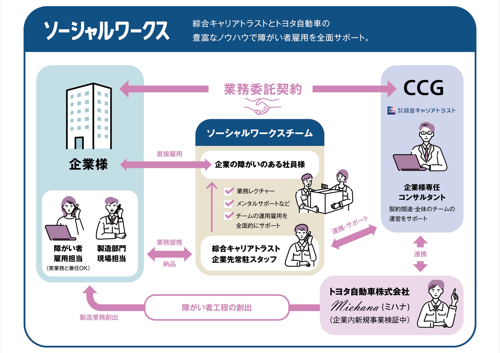 製造工程での障がい者作業創出を行なうトヨタ自動車の新規事業(検証中)と連携し「ソーシャルワークス」の提供を開始&オンライン説明会を開催|綜合キャリアトラスト