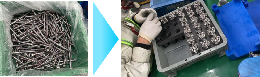 工程のムリ・ムラ・ムダを抜き出し、その作業を専用の治具や仕組みと組み合わせることで、障がい者にも安心して任せられる工程にしていきます。