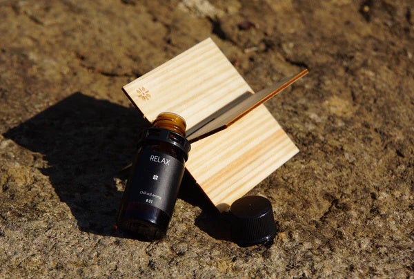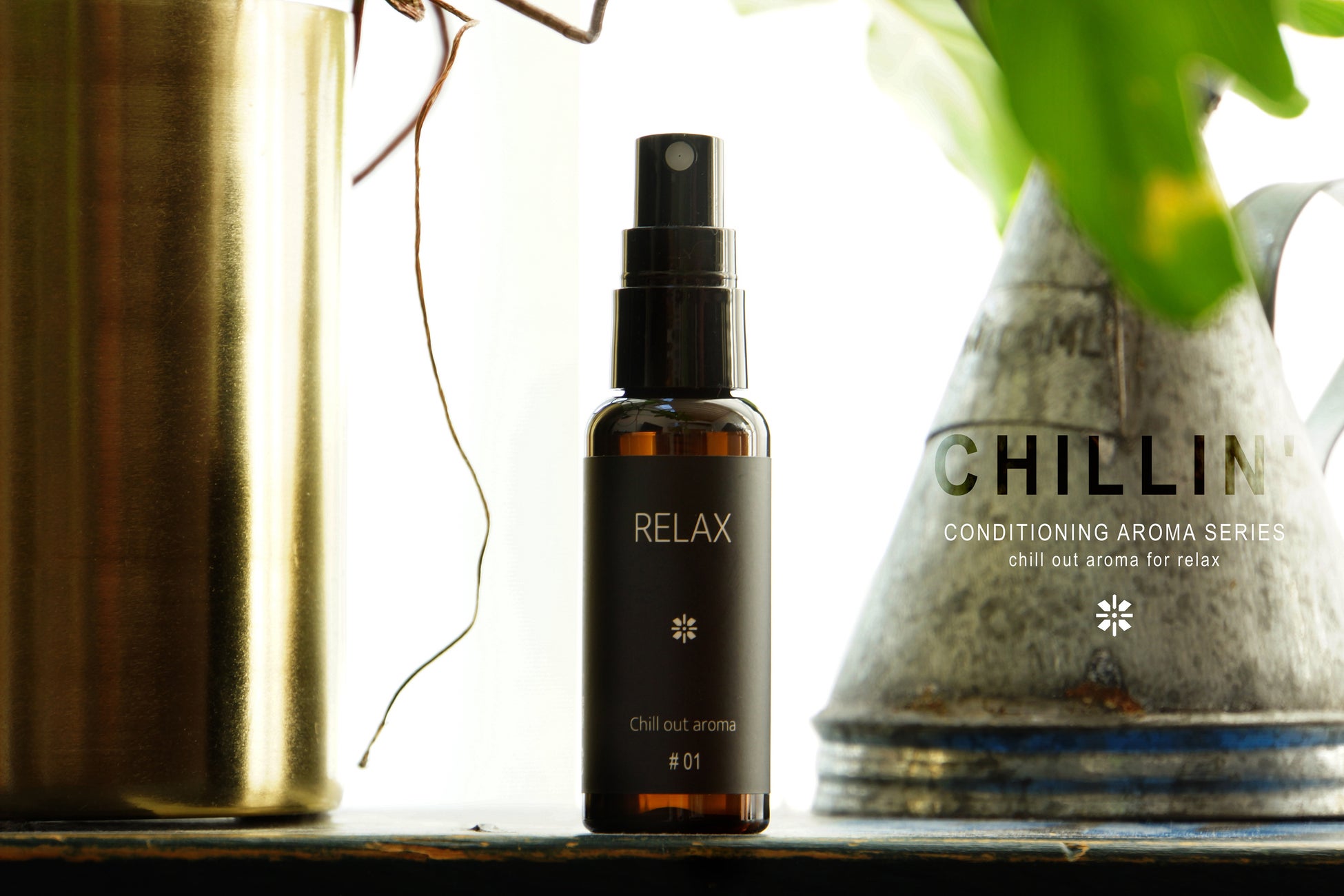 ストンと落ちていくような、重厚感ある香りのRELAX(chill out aroma)は、緊張緩和、筋肉を緩めるなどに良いと言われるホーウッドなどを含む4種類の天然成分を調香して作られています。