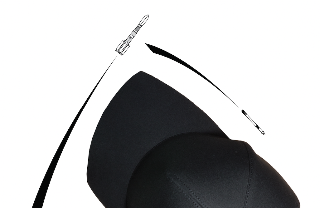 ロケットの軌跡をもとに宇宙産業界のためにデザインされたキャップ【 T+ 】