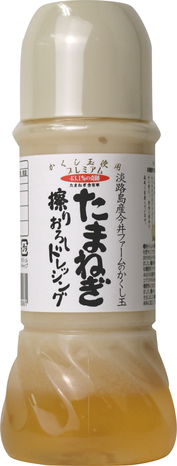 淡路島たまねぎ「かくし玉」を擦りおろした真っ白なドレッシング。玉ねぎの含有量43.1%で素材の持つ旨みが際立っています。