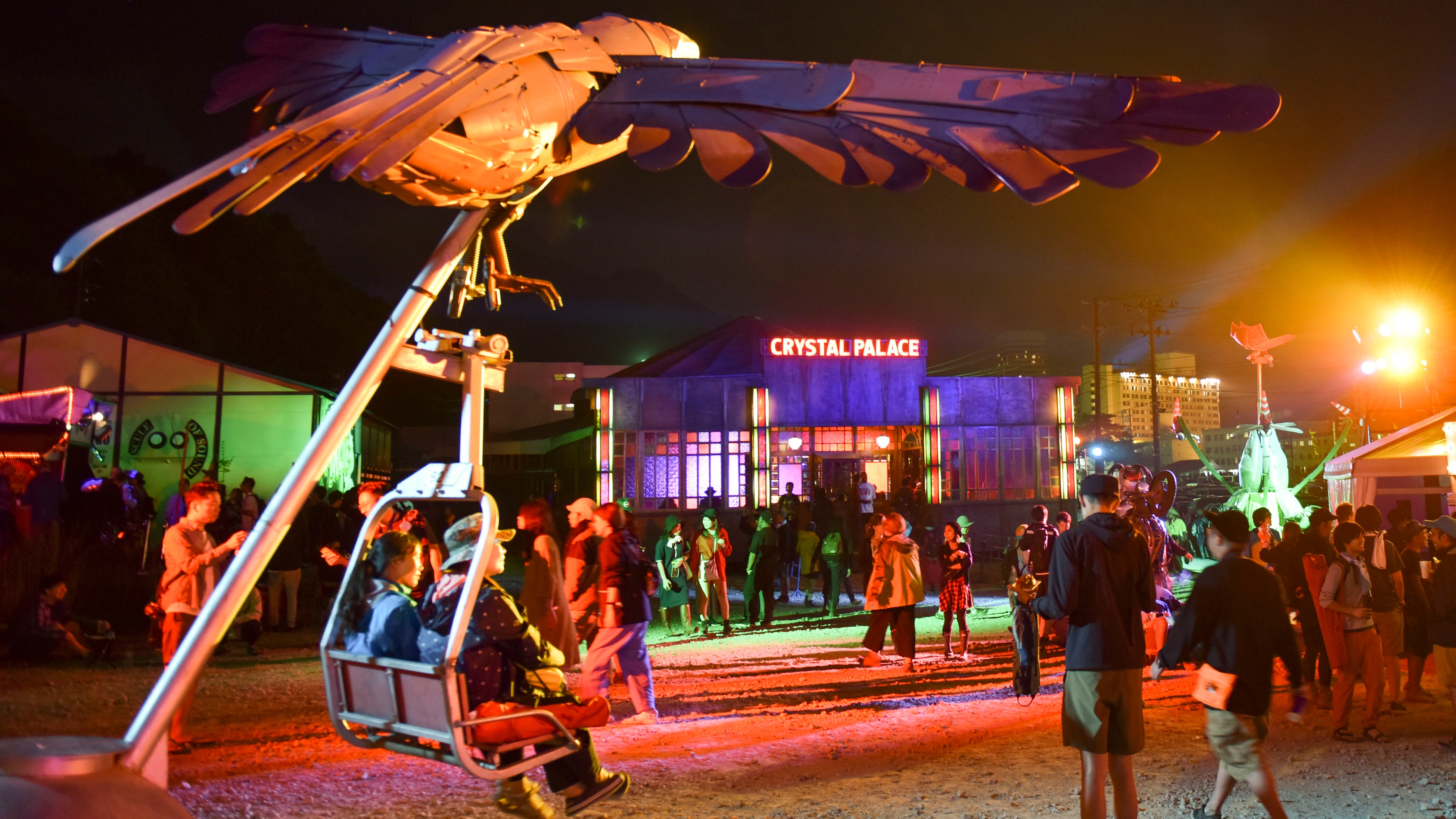 音楽からサーカス、ポールダンス、お酒なども楽しめる大人の遊び場。廃材から作られた巨大アリや、怪しいデザインの回転遊具などに囲まれたフォトジェニック過ぎる魅惑の空間。