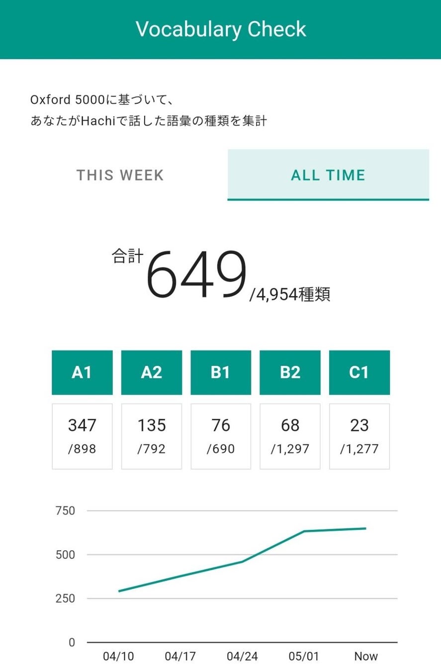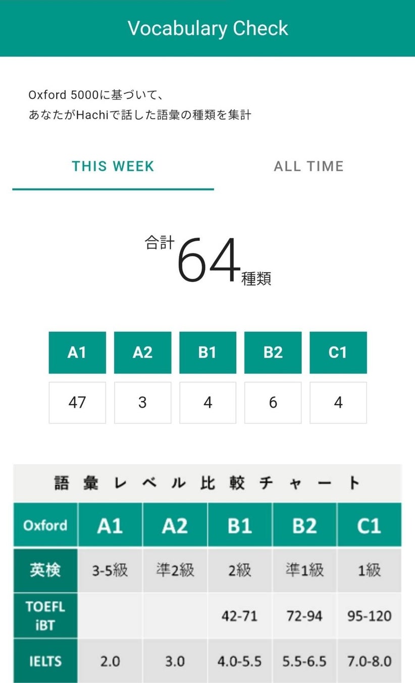 『Hachi』は新機能実装により、ユーザーが実際に会話で使用した単語の数や難易度を判定し、推移とともに可視化することが可能となりました。