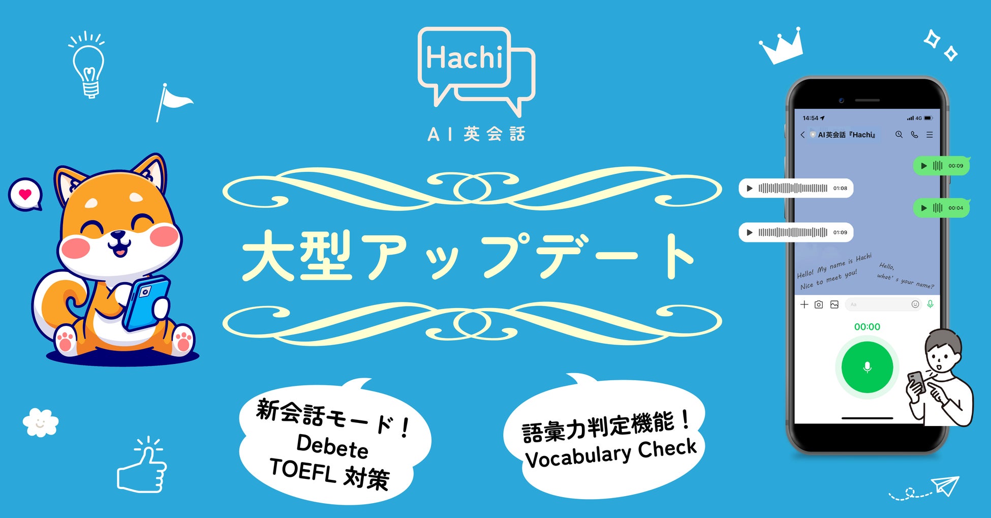 AI英会話『Hachi』大型アップデート:「TOEFLスピーキング対策モード」等の新機能追加、GPT4を組み込んだ「Proモード」を追加決定