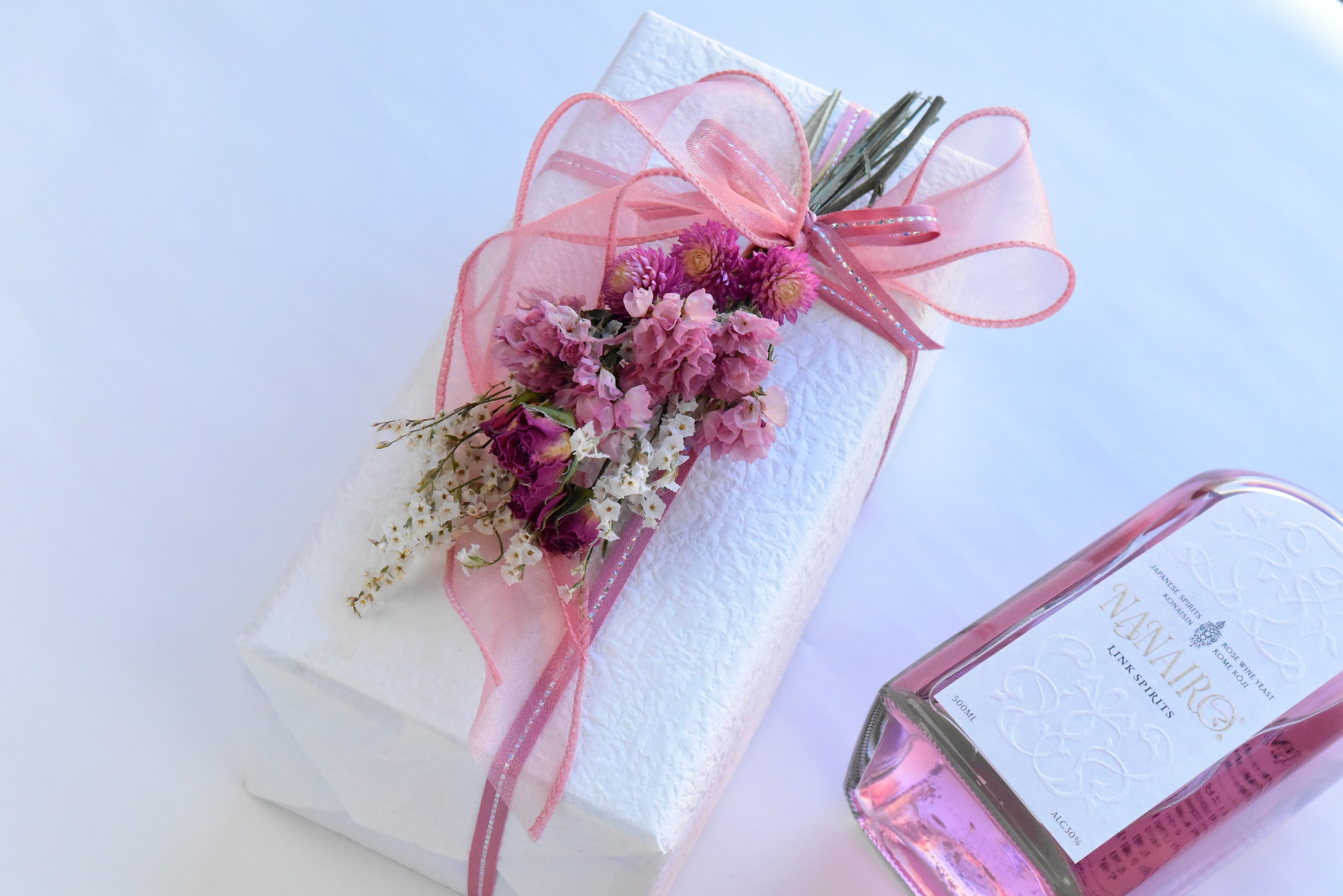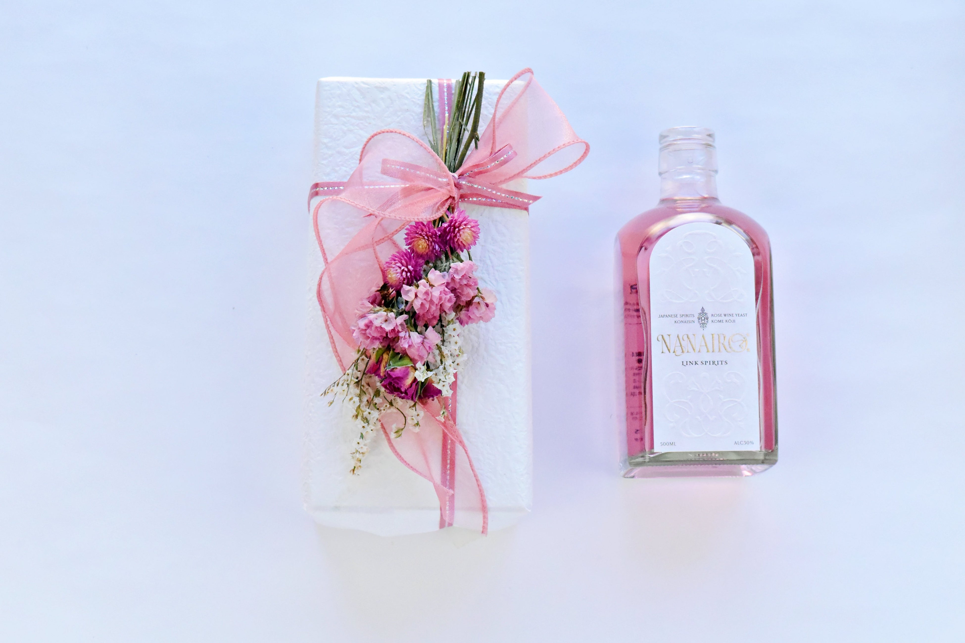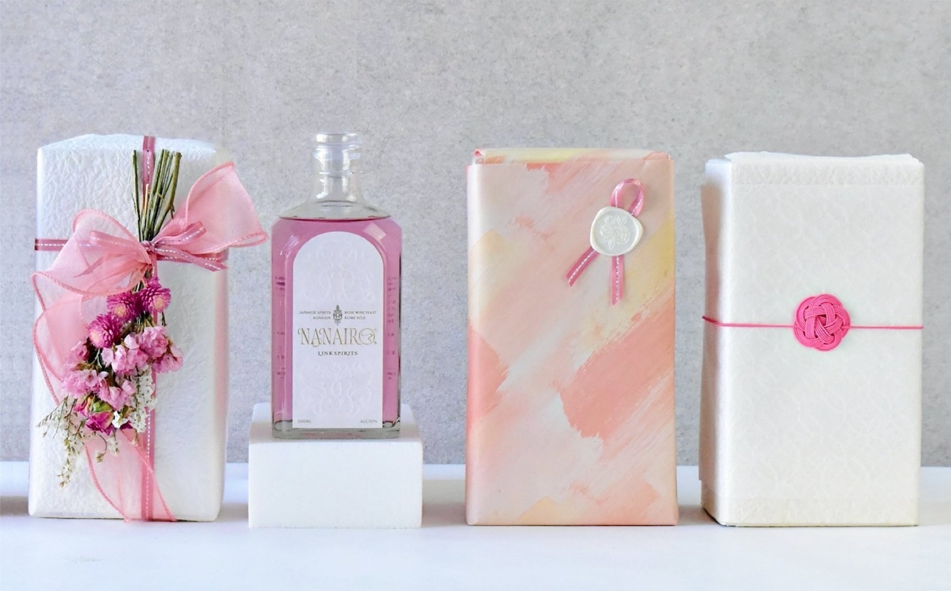ピンク色の本格焼酎スピリッツ「NANAIRO-七色-」から贈り物や特別な日のためのギフトラッピングが新登場