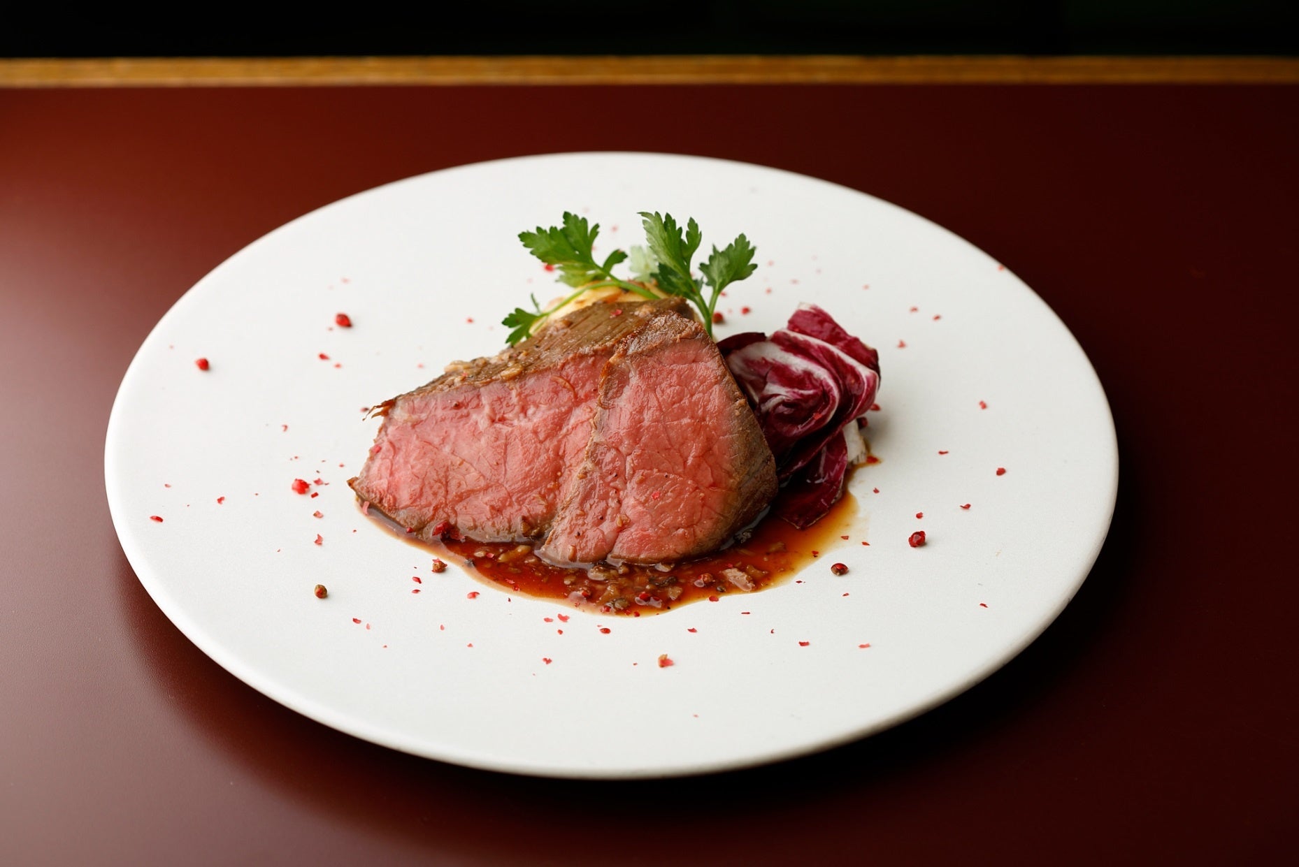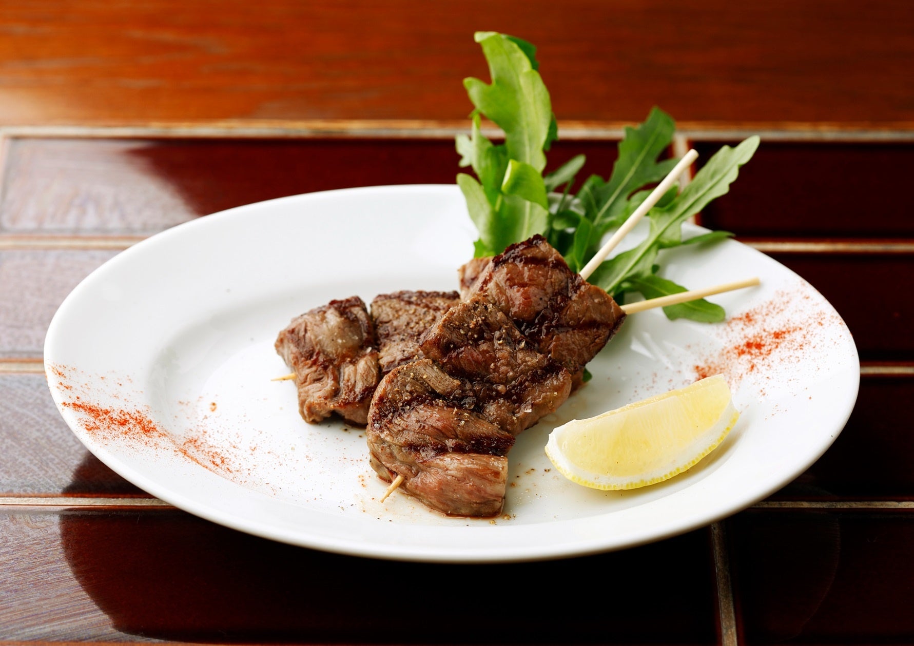 しまね和牛のランプ肉をニンニクとローズマリーでマリネし、塩だけでシンプルにグリル。ジューシーに柔らかく焼き上げられ、ひと口食べると肉の旨みと脂の甘みが口いっぱいに広がります。1串60gの食べやすいサイズに仕上げました。
