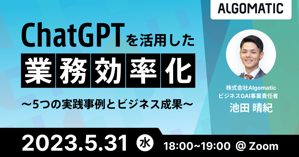 ChatGPTを活用した業務効率化の最新事例を紹介!Algomaticが5/31(水)にセミナーを開催