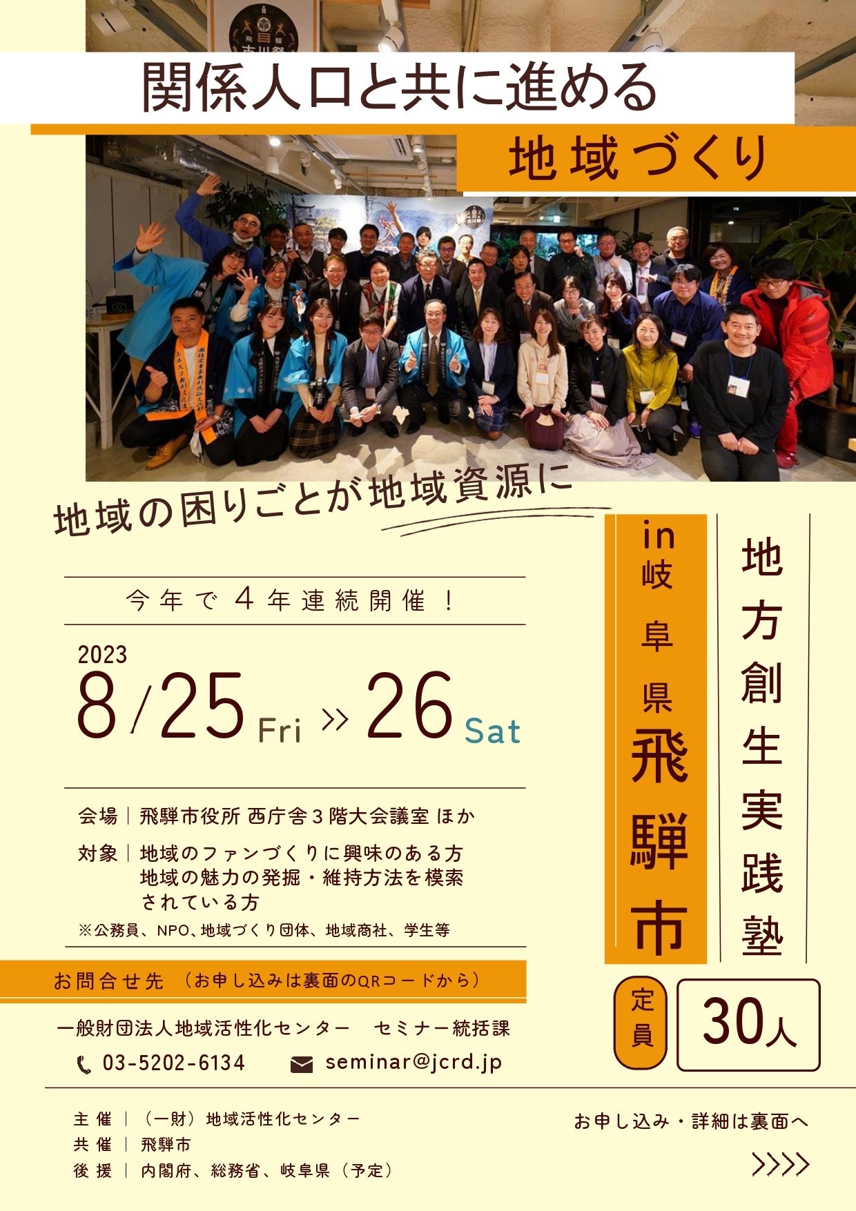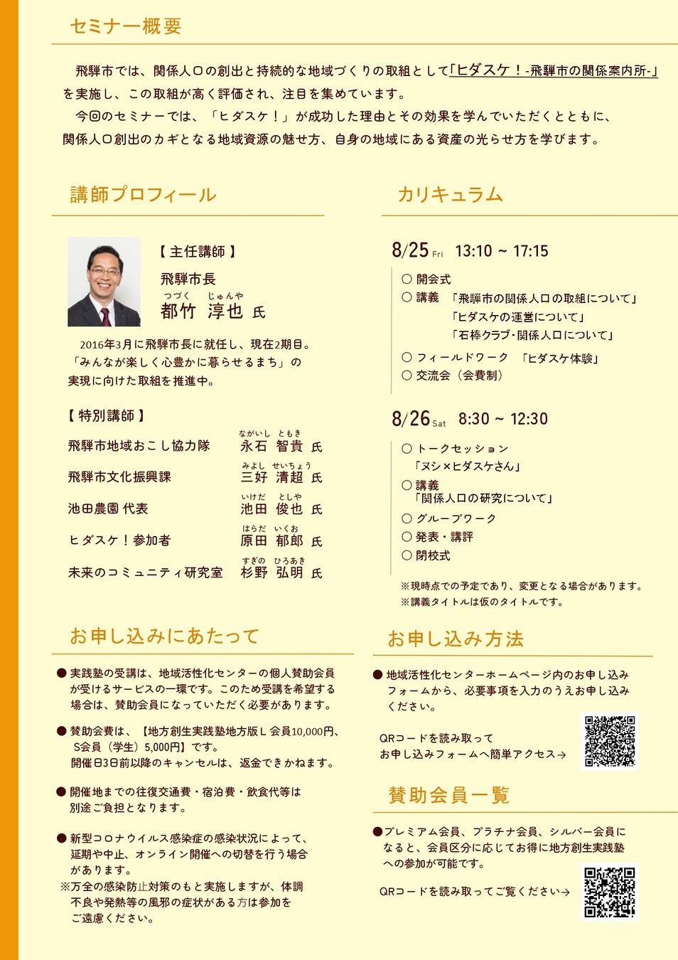 関係人口の創出と持続的な地域づくりについて学ぶ濃密な2日間 「地方創生実践塾in飛騨市」を8月25日(金)~26日(土)に開催!
