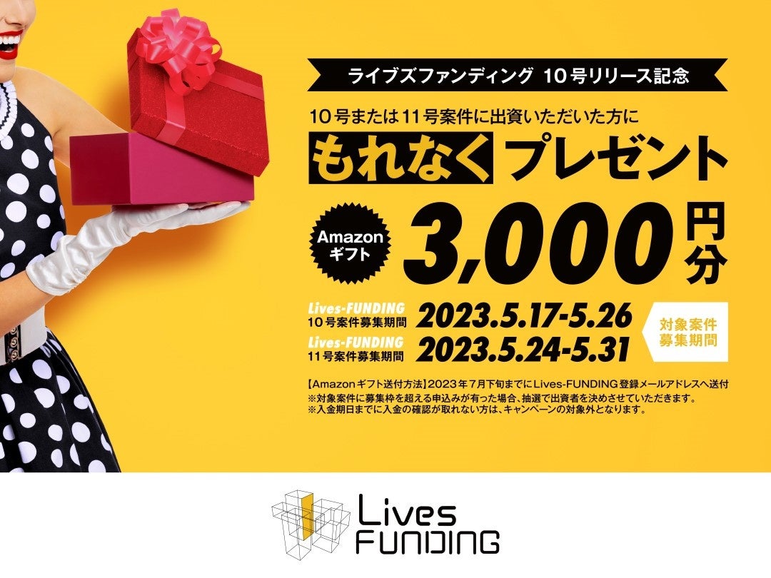 【5月17日~5月31日開催】投資初心者にもおすすめ!Amazonギフト券¥3,000を手にいれるチャンス「Lives-FUNDING10号リリース記念」