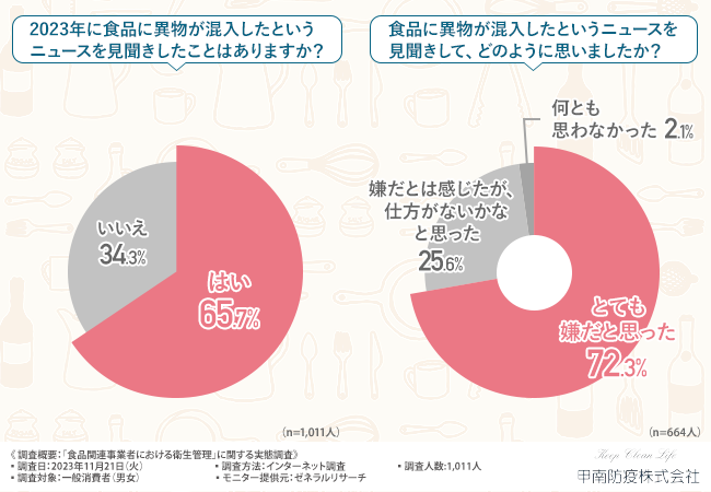 食品に異物が混入したニュースを見聞きして、嫌だと思った方が多いことがわかりました。