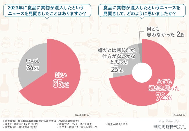 「2023年に食品に異物が混入したというニュースを見聞きしたことはありますか?」と質問したところ、6割以上の方が『はい(65.7%)』と回答しました。