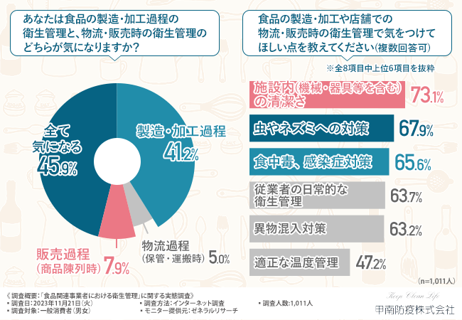 食品の製造から消費者の手に渡るまで、全ての過程において衛生管理が気になる方が多いことが明らかになりました。