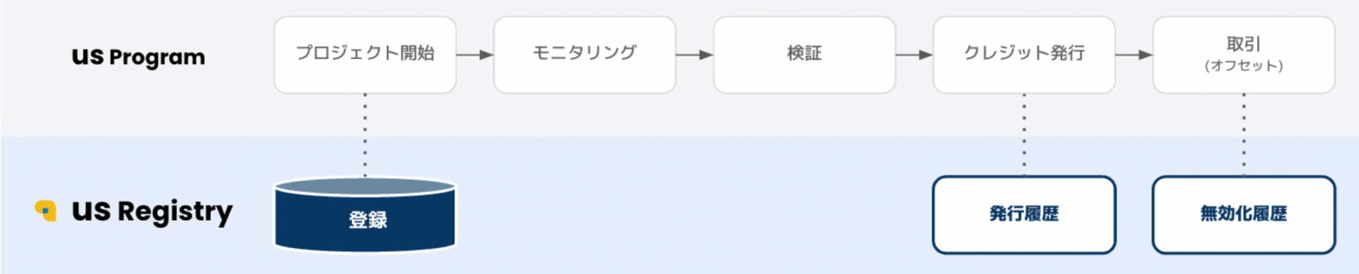 レジストリは、カーボンクレジットの発行や売買後の無効化などの取引情報を記録し、炭素削減の取り組みとその結果を正確に追跡できるようにします。