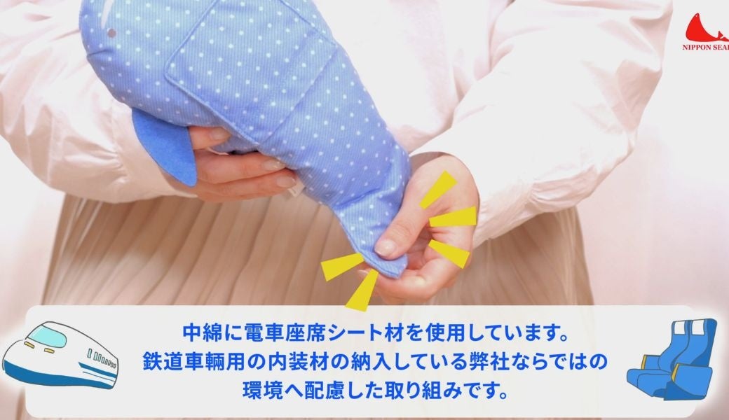 中綿には電車座席のシートを再利用することで、日本シールの強みを活かした環境にも優しい商品。