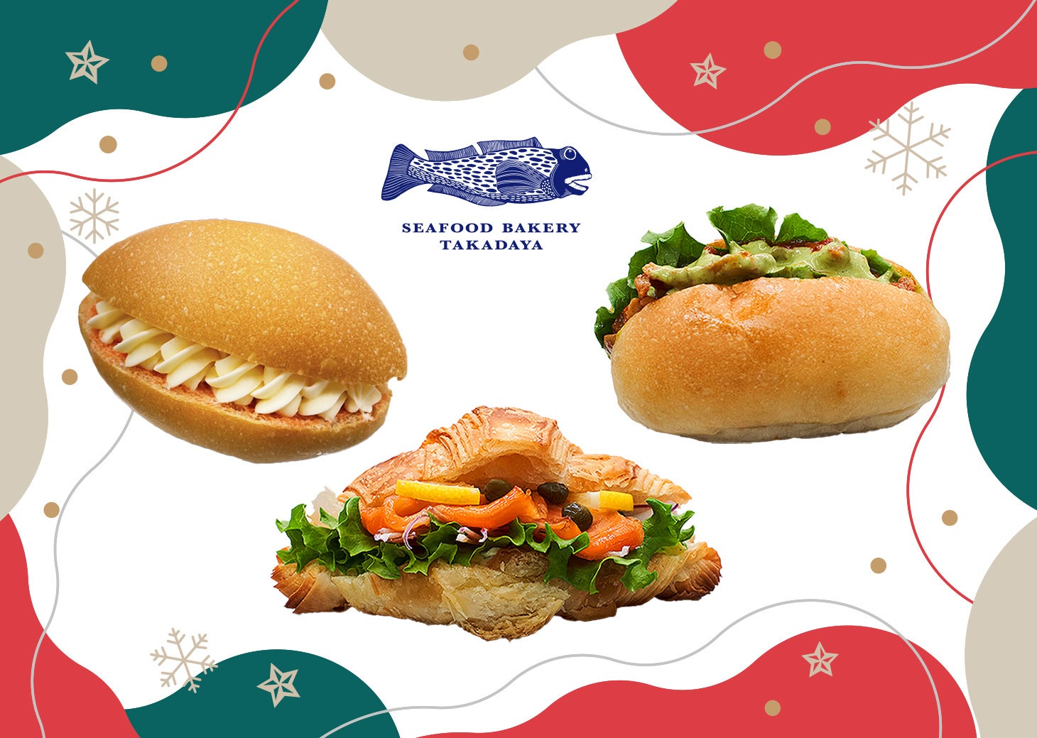 12月25日(月)・26日(火)の2日間限定で、「スモークサーモンのクロワッサンサンド」「つぶ貝のトマト煮サンド」「福さ屋の生明太ミルクフランス」の3種類を詰合せた『パーティーセット』を販売いたします。