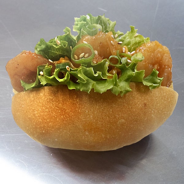 ふわふわ卵が入ったエビチリをパンにはさんで食べる新食感