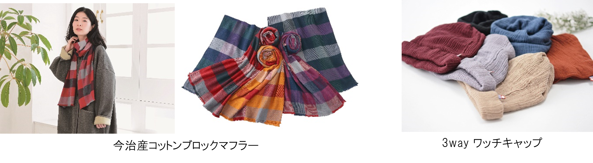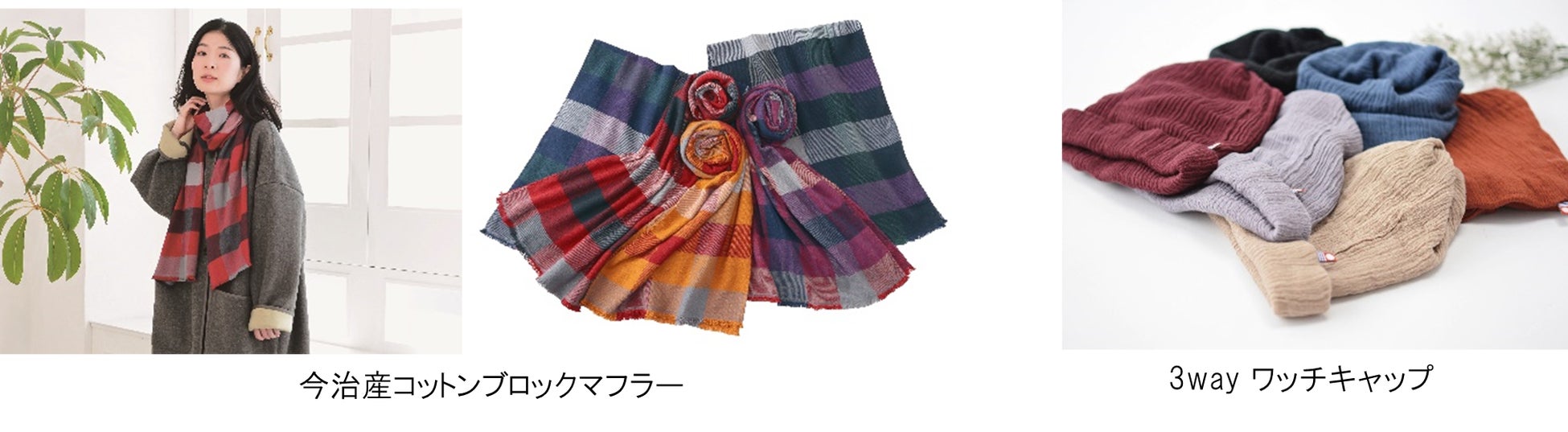 継続出展している本展示会では、秋冬シーズンに向けた「今治タオルブランド」の高い技術力を活かし開発した服飾雑貨商品を展示します。静電気が起こりにくく、肌あたりが優しい綿製品を紹介予定です。