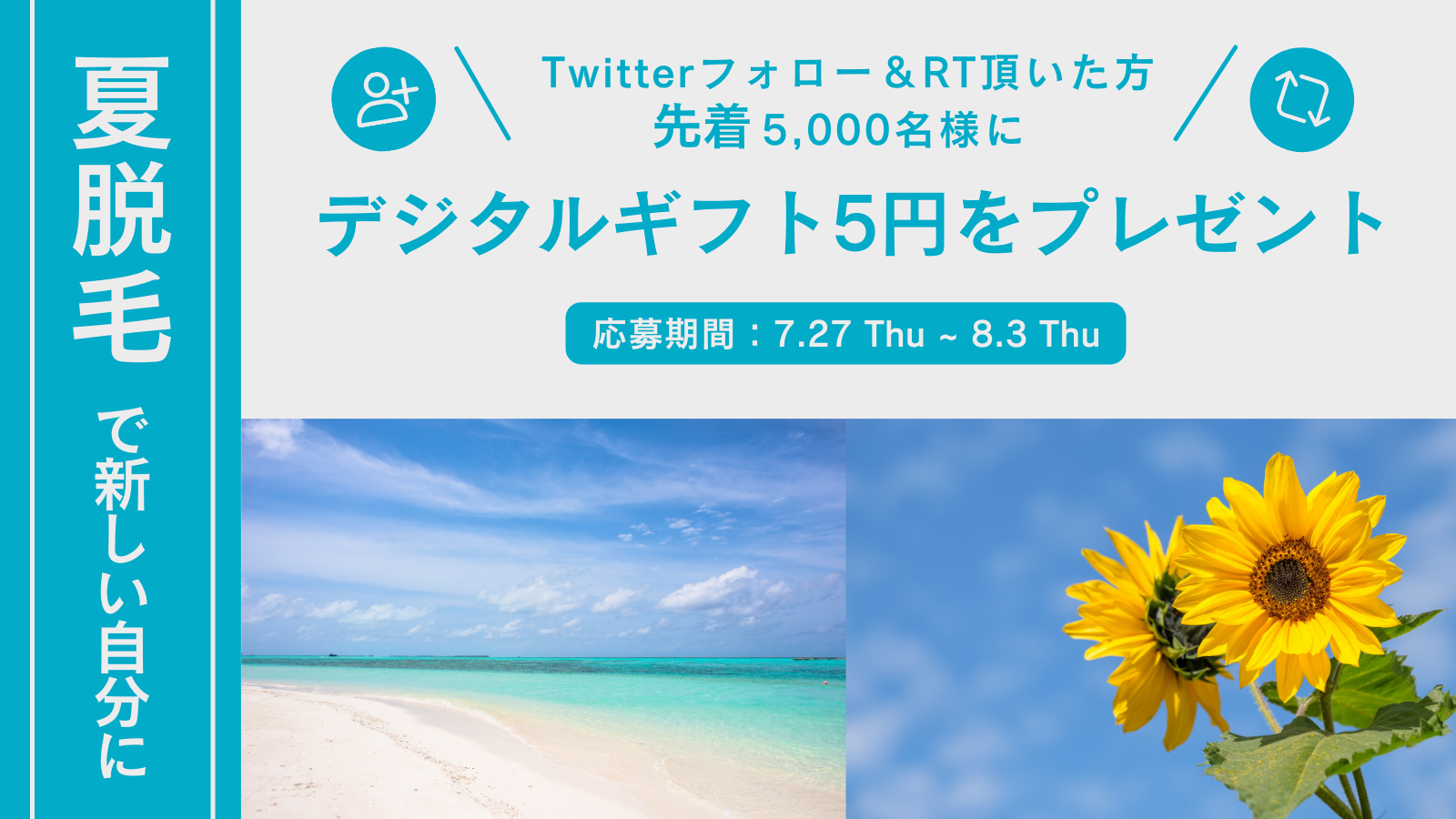 女性専用の美容脱毛サロン「ビー・エスコート」を展開する株式会社セピアプロミクス(所在地:愛知県名古屋市、代表取締役社長:佐野 敬志)はこの度、皆さまの夏美容を応援するため、SNSキャンペーンに応募して下さった方の中から先着5,000名様に、デジタルギフト券5円分を贈呈いたします。