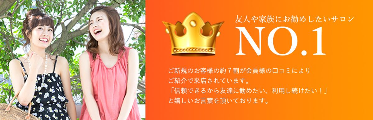 当サロンは、「安心・安全」「丁寧」を心がけており、新規顧客の方の7割が、友人・知人の紹介で来店されています。施術に満足頂けるお客様が多いからこそ、このたび、新規のお客様にもまずは低価格で試して頂きたく、全店舗でキャンペーンを実施しています。