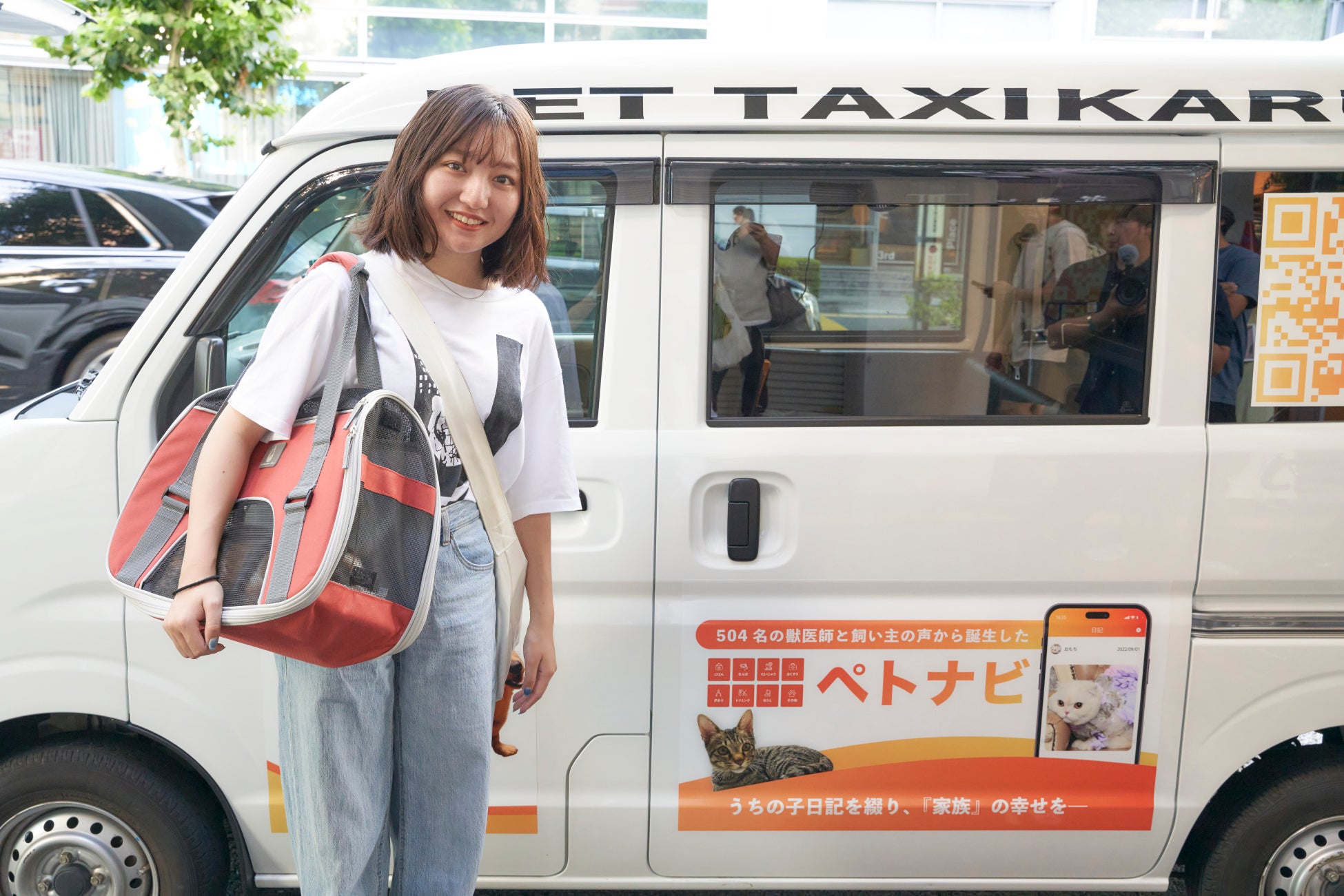 花音さんは愛猫3匹(いずれもスコティッシュフォールド)、はっさく(9歳)・みかん(7歳)・かぼす(1歳)とともにペトナビタクシーで会場へ。花音さんは「座席がとても広く、(猫と)寄り添って一緒に乗れたのがとてもよかったです」と話しました。