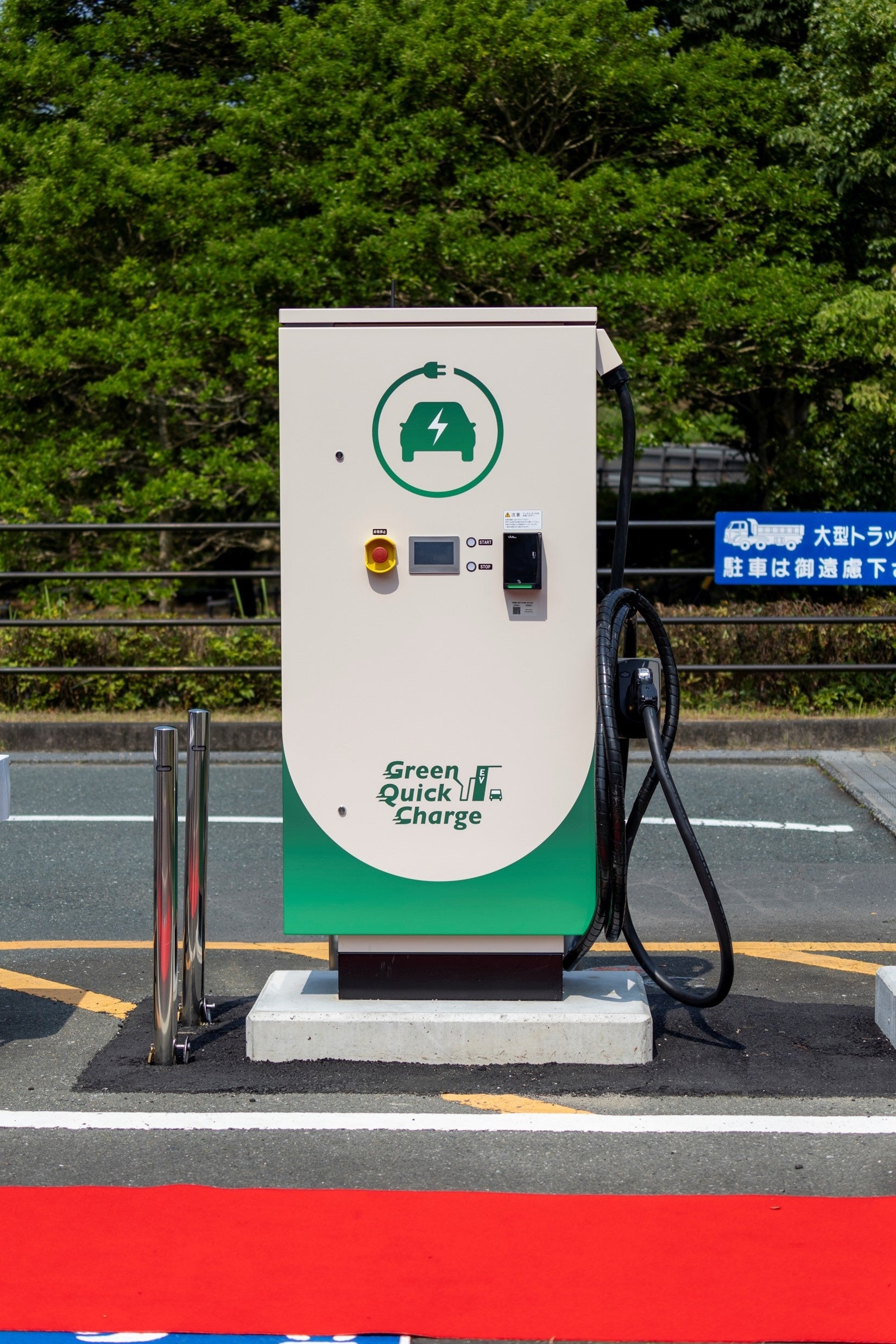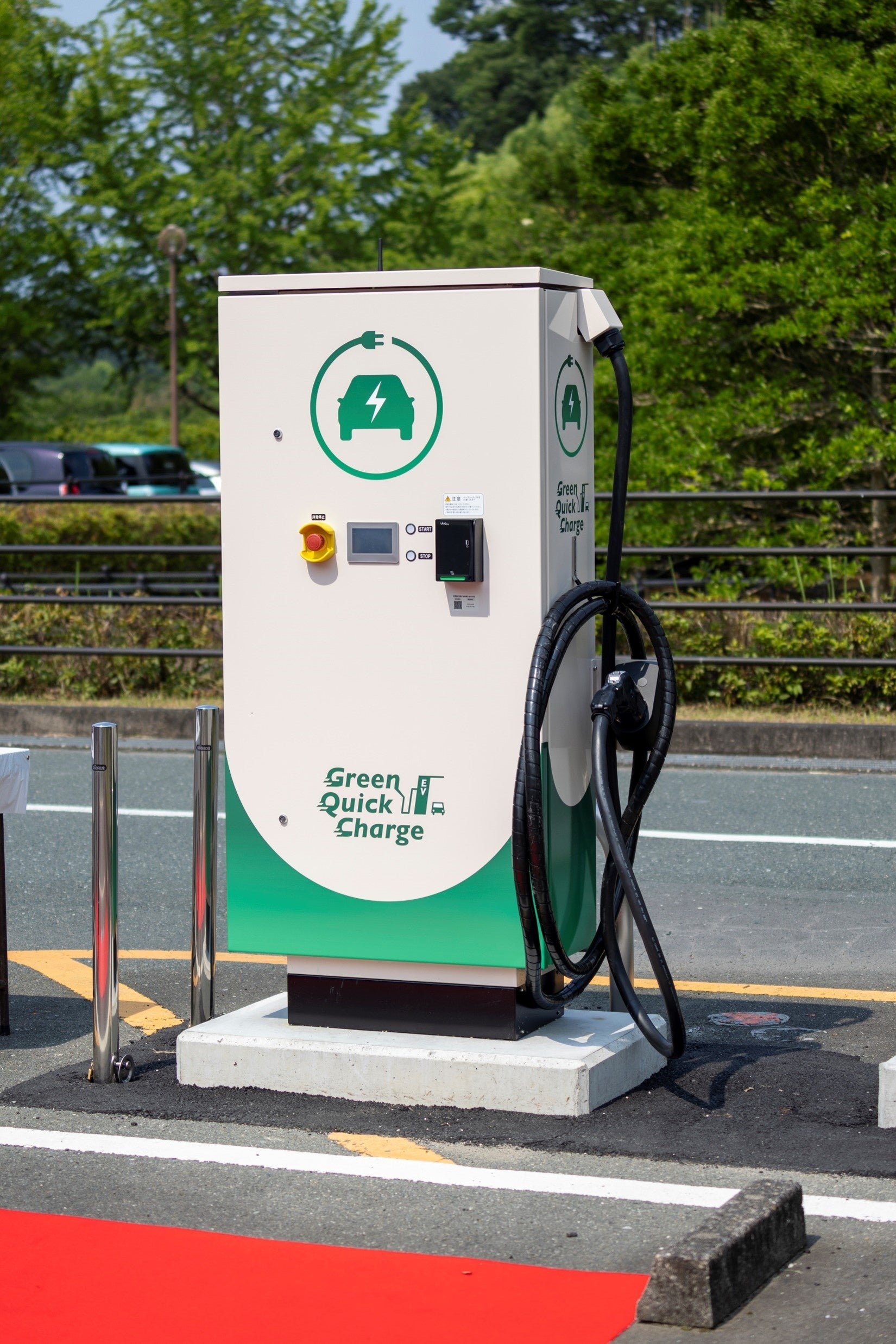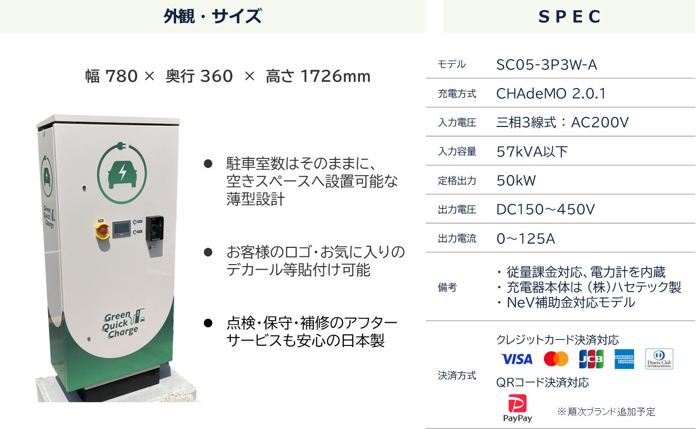 「次世代型EV充電器」 kWh従量課金方式のEV充電スタンドをOPEN。出力50kWの急速充電。