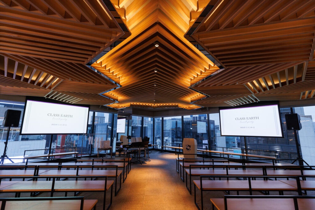 国際生物多様性の日である5月22日に、ブランドのスタートとなる「CLASS EARTH」を一足早く関係者の皆さまにお披露目しました。この日お集まりいただいたのは、環境やファッション、アートやエンターテイメント等、様々な業界のパートナーの皆さま。GINZA SIX “THE GRAND GINZA”にて当社が管理するアートの展示、今後プロジェクトをご一緒するアーティストの生演奏、そして環境に関する有識者の皆さまにご登壇いただきました。