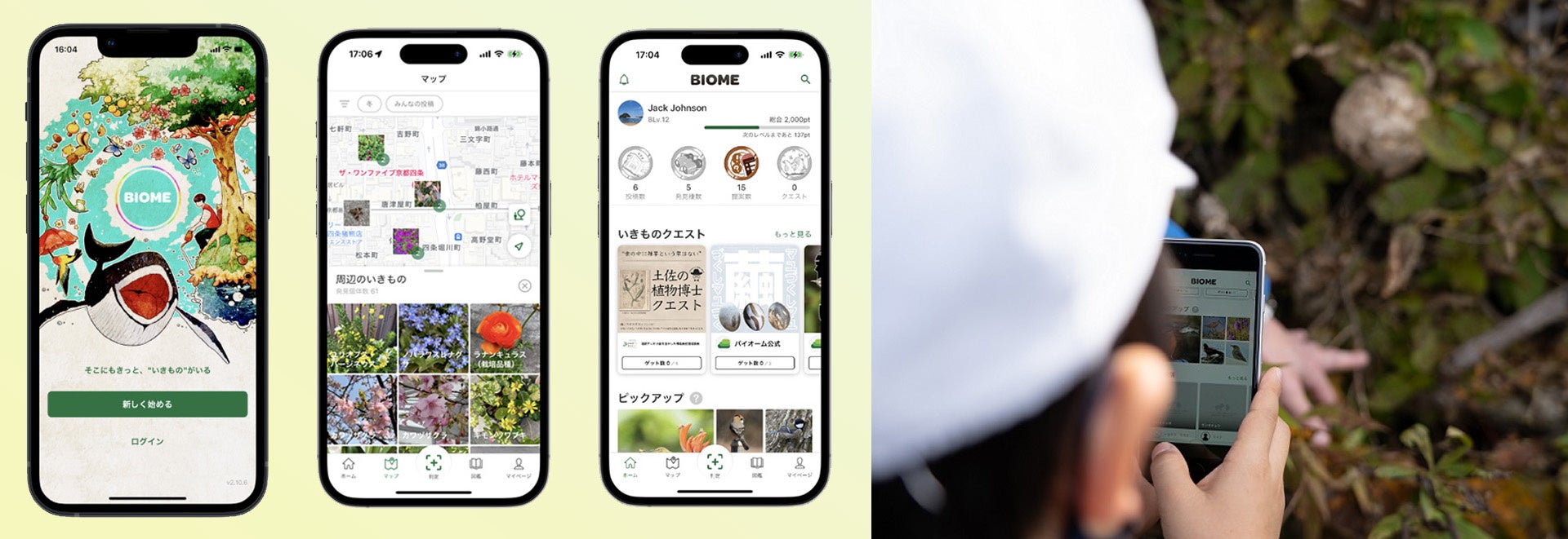 Biomeは子どもから大人まで、生物の写真を撮影し投稿し、ゲーム感覚で楽しみながら生物の生息データの蓄積に参加できるスマホアプリで、2023年5月現在70万人が利用しています。藤木様のボルネオ島での開発を見た原体験から、生物多様性を保全することがビジネスになるような社会を目指していらっしゃるとのお話しがありました。