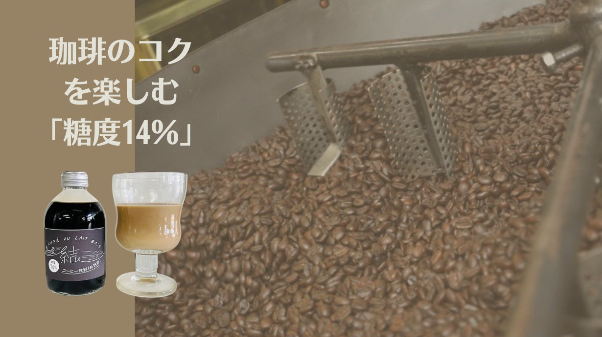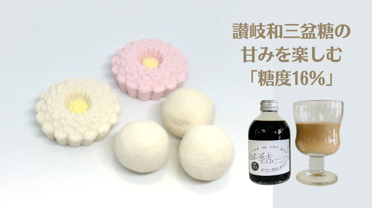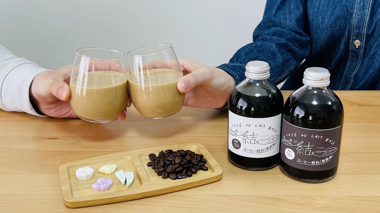 カフェオレベース「結」は、当社3代目後継者がIターン(移住)先の香川県東かがわ市で、讃岐和三盆糖に出会ったことをきっかけに生まれました。珈琲と讃岐和三盆糖だけでなく、飲料化、パッケージ、デザインに至るまで、さまざまな人々との「結びつき」によって生まれた当商品。飲んだ人にとって「頑張った自分の1日や1週間を結ぶ」「大切な人との時間を結ぶ」ひとときをご提供できるようにという願いを込めて「結(ゆい)」と名付けました。