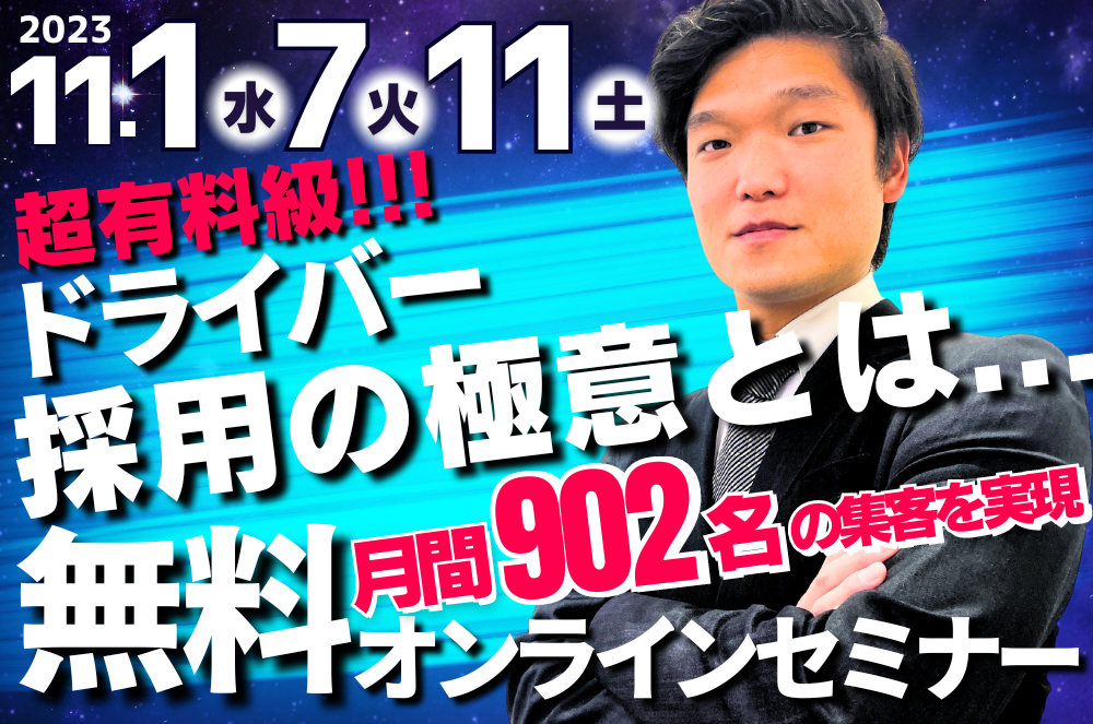 11月1日(水)軽貨物ドライバー採用特化型セミナー開催決定。2024年問題、インボイス制度、働き方を改善してもまだまだ足りないドライバー職。軽貨物市場の成長を見据えてドライバー確保を狙う事業者募集!!