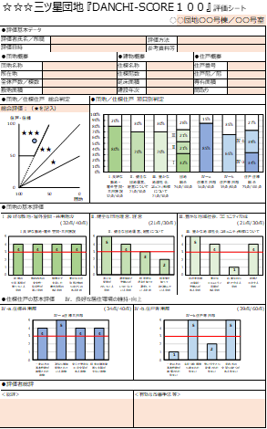 また、「DANCHI-SCORE 100」を活用した団地の「ハード面」、「ソフト面」、および「コミュニティの現状と再生の可能性」を診断するプロセスおよびノウハウをマニュアル化し、団地評価の実務を担える事業者を育成していく体制を構築いたしました。