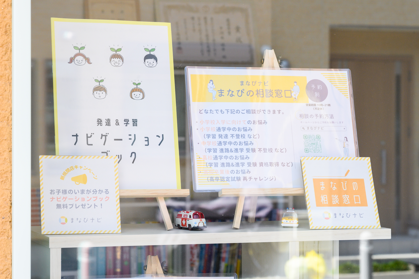 まなびの相談窓口は、まなびナビ合同会社が2023年5月、JR南武線「稲城長沼駅」から徒歩1分のシェアデパートメントの一画にオープンをしました。誰でも気軽に無料で「子育て・教育・学習」に関する相談ができます。オープン以降、平日、土日を含め多くの利用者が利用をしています。