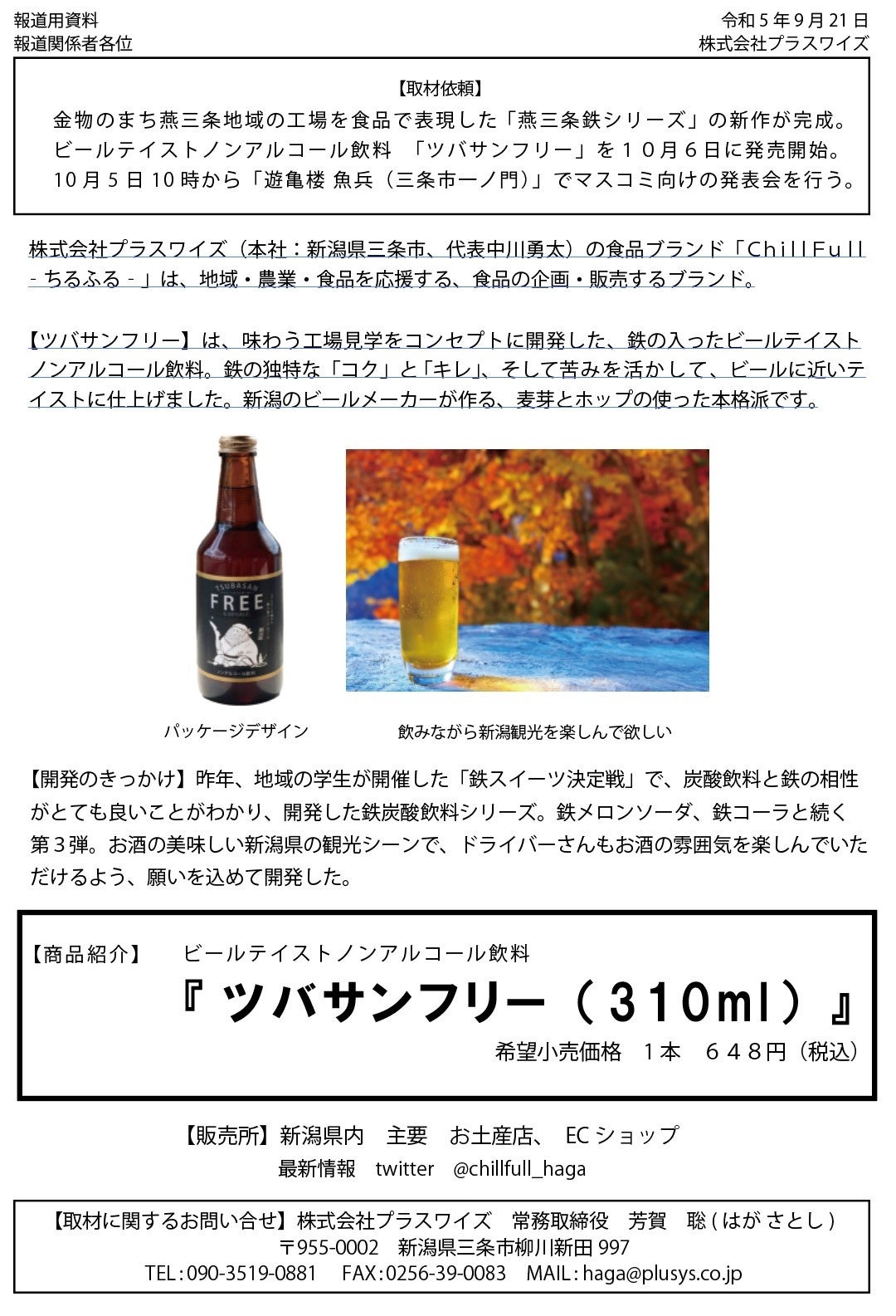 【新商品】金物のまち燕三条地域の工場を食品で表現した「燕三条鉄シリーズ」の新作が完成。ビールテイストノンアルコール飲料 「ツバサンフリー」を10月6日に発売開始。