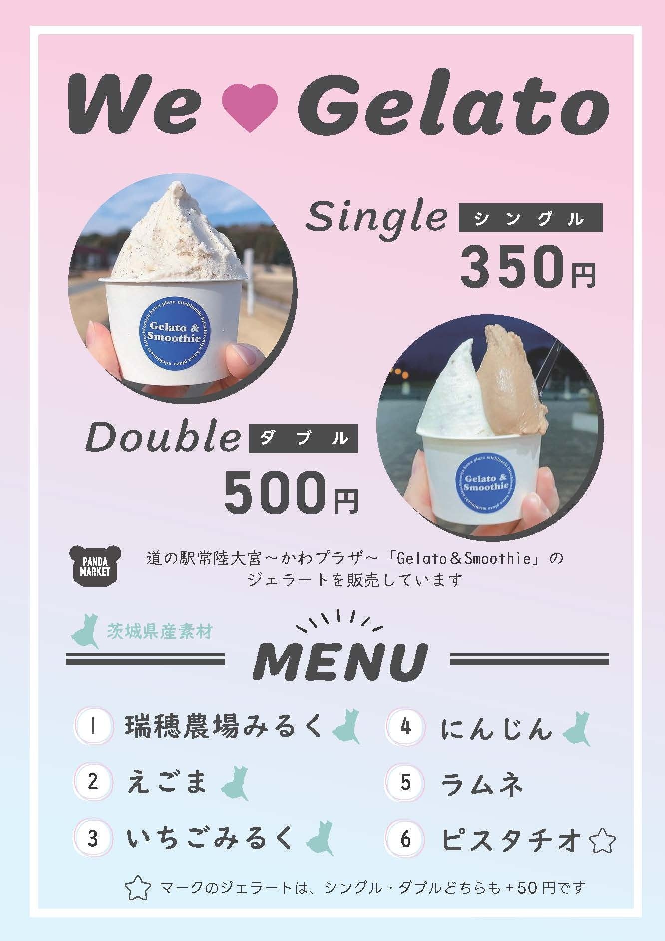 PANDAMARKETでは、地産地消の商品づくりにこだわっている、道の駅常陸大宮~かわプラザ~「Gelato&Smoothie」のジェラートの販売を7/4から開始しました。