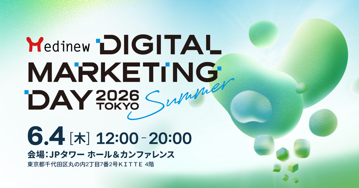 株式会社医薬情報ネットが運営するメディア「メディカルマーケティングマガジン『Medinew』」は、2026年6月4日(木)にJPタワー ホール&カンファレンス(東京)にて、リアルイベント「Medinew Digital Marketing Day 2026 Summer(MDMD2026 Summer)」を開催いたします。