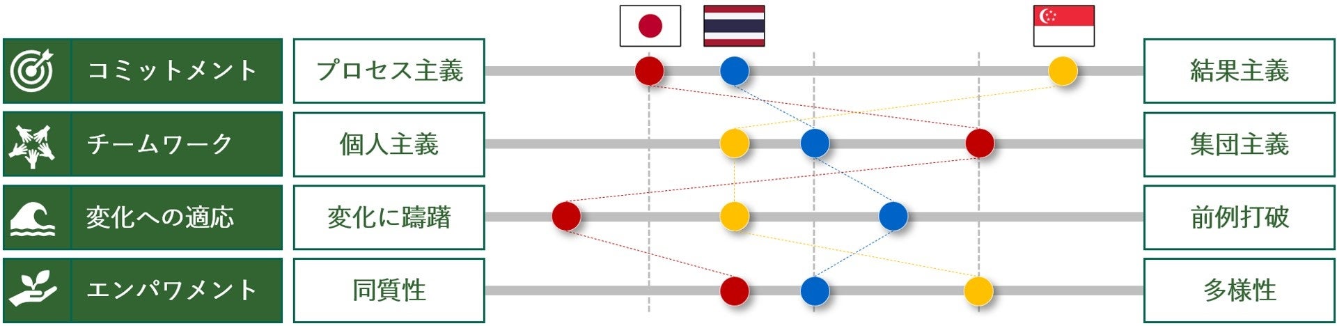 これまで、国内および東南アジア等の海外の多くの企業における企業文化の改善・強化で培った知見を活かし、その実現をご支援します。