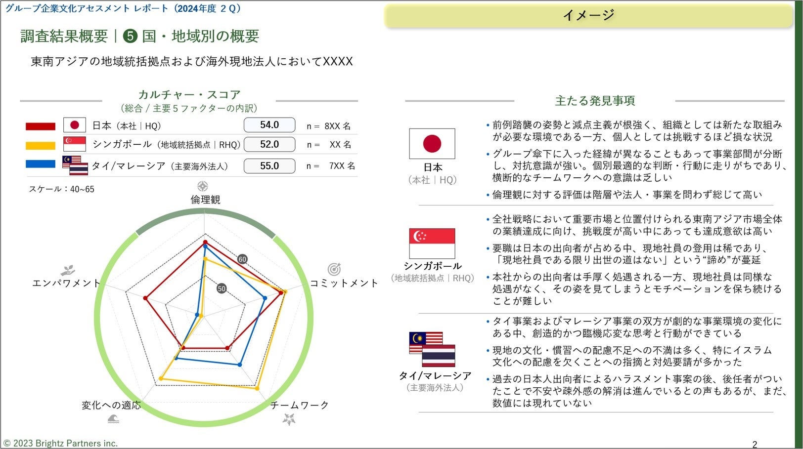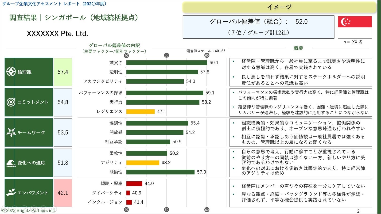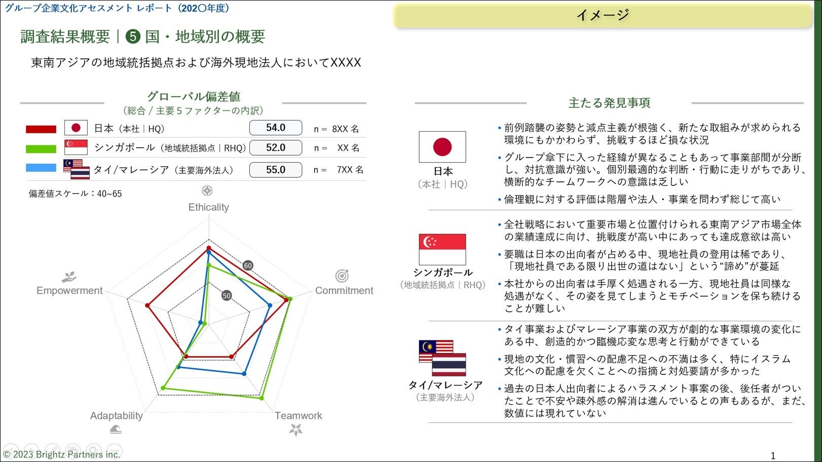 企業文化アセスメントの成果物として、企業文化アセスメント レポートをご提供します。