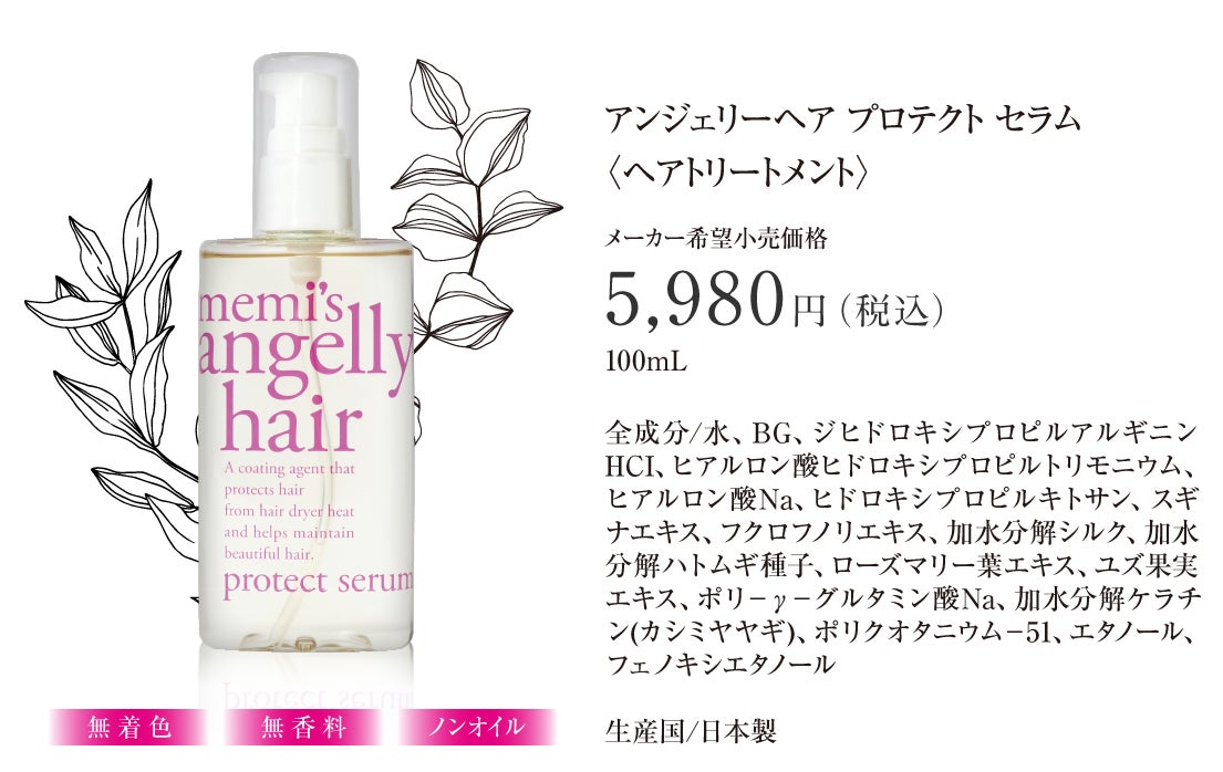 多少高くても本当に良い商品を出すために新ブランドを設立、その「memi’s angellyhair(アンジェリーヘア)」シリーズ第1弾として「プロテクトセラム」が発売されました。