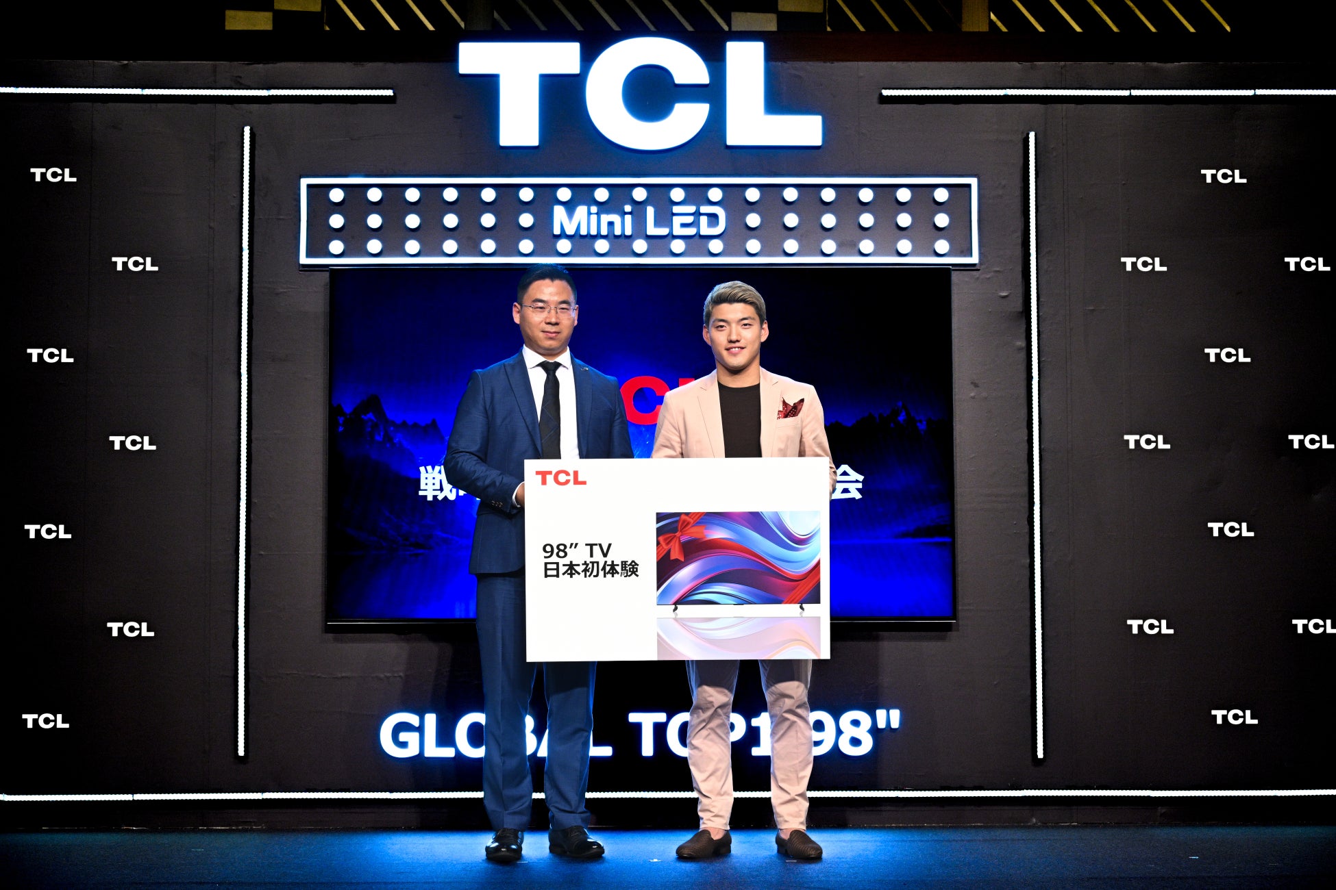 最後に、 TCL代表取締役社長張濟鵬から98インチテレビをプレゼントとして受け取り、がっちりと握手。「すごく豪華なプレゼントを頂きました!体験ブースではゲームをクリアすることができなかったので、これで僕もゲームクリアを目指します!」と笑顔を浮かべて、「僕自身TCLという素晴らしいパートナーと組めることを光栄に思います。それに恥じないよう、僕はサッカー選手としてピッチで頑張りたいと思います」と意気込みを新たにしていました。