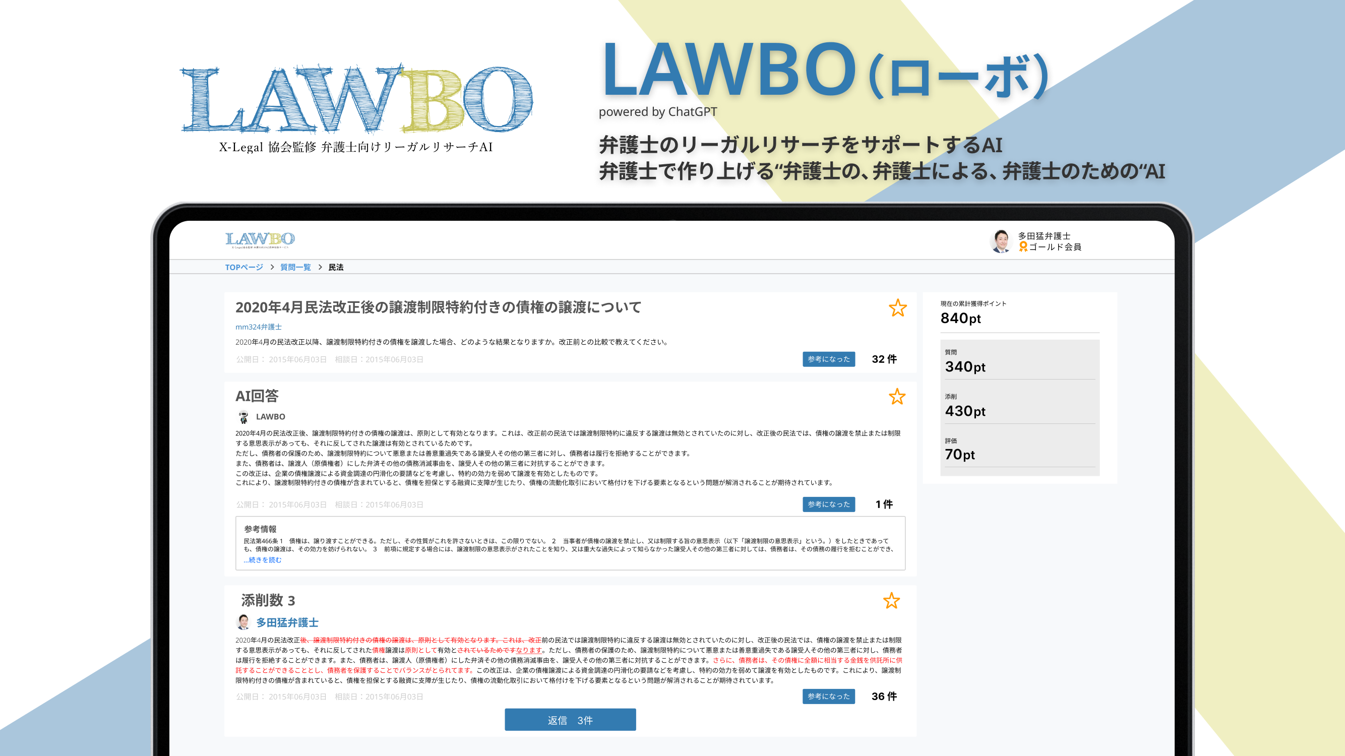 ChatGPTを活用したリーガルリサーチLINEアプリ「LAWBO(ローボ)powered by ChatGPT」(以下「LAWBO」といいます。)の提供を開始
