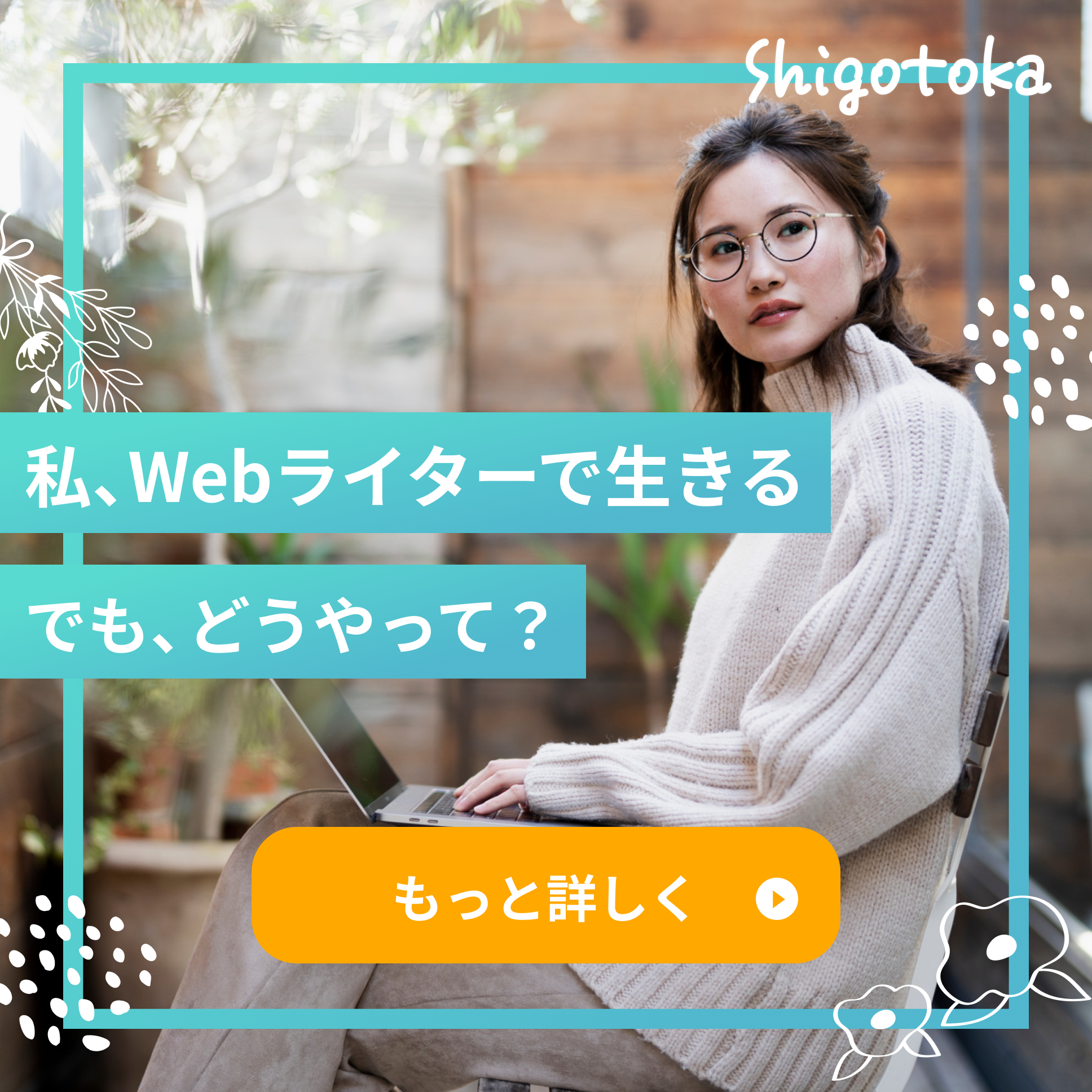 現在、Webライターとしてのキャリア形成に悩みを抱える方を対象に、無料カウンセリングの実施と取材のコツがわかる教科書をプレゼントしています。詳細は下記の“Shigotoka”特設ページ”をご覧ください。