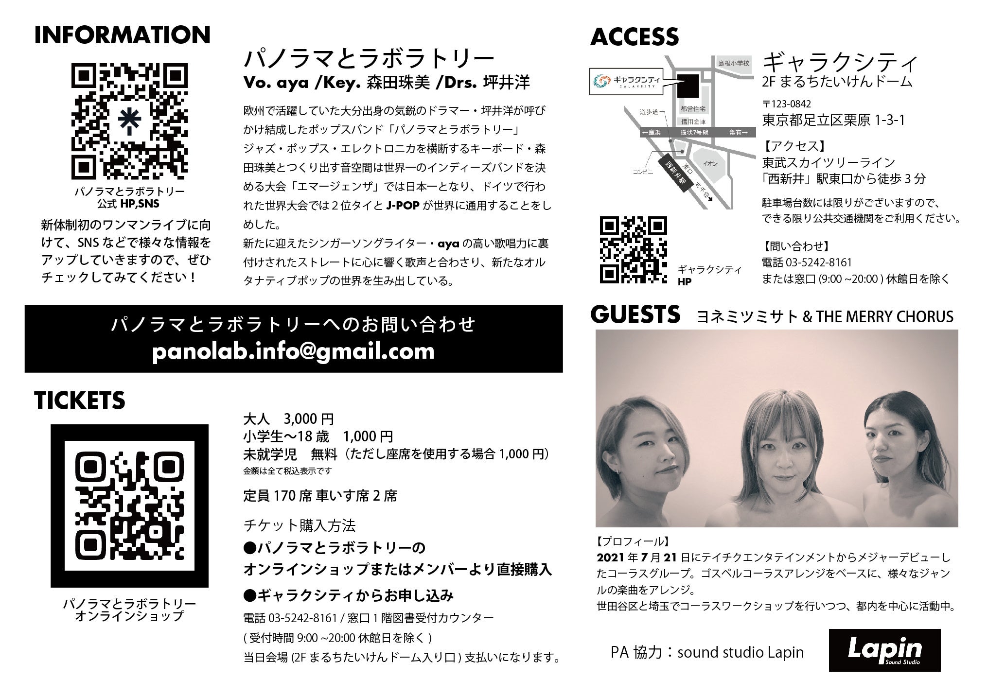11月19日(日) 西新井ギャラクシティ まるちたいけんドーム 開場18時半 開演19時 会場視聴用(残りわずか)チケットは下記もしくはギャラクシティから https://panolab.official.ec