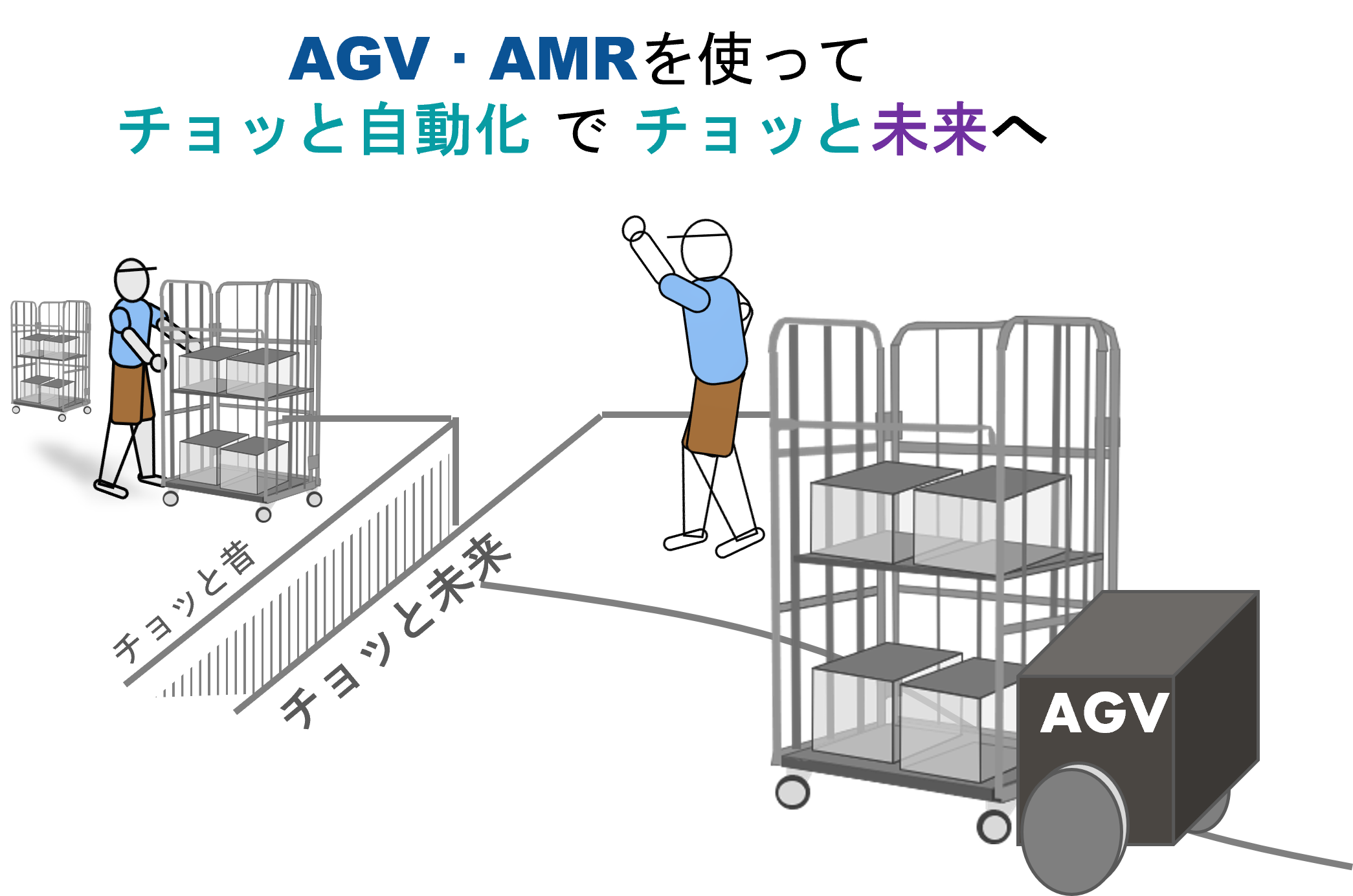 私たちは、AGVにもこれらのハードルを越えて人に優しく寄り添い、現場を楽にしてくれる能力があると信じています。「キツイ」物流の現場を、「楽しい」ものに変えるAGVの力と可能性を信じ、その導入と活用を支援することで広く物流業界の発展に貢献し、物流を日本の働きたい業界No.1にすることを目指します。