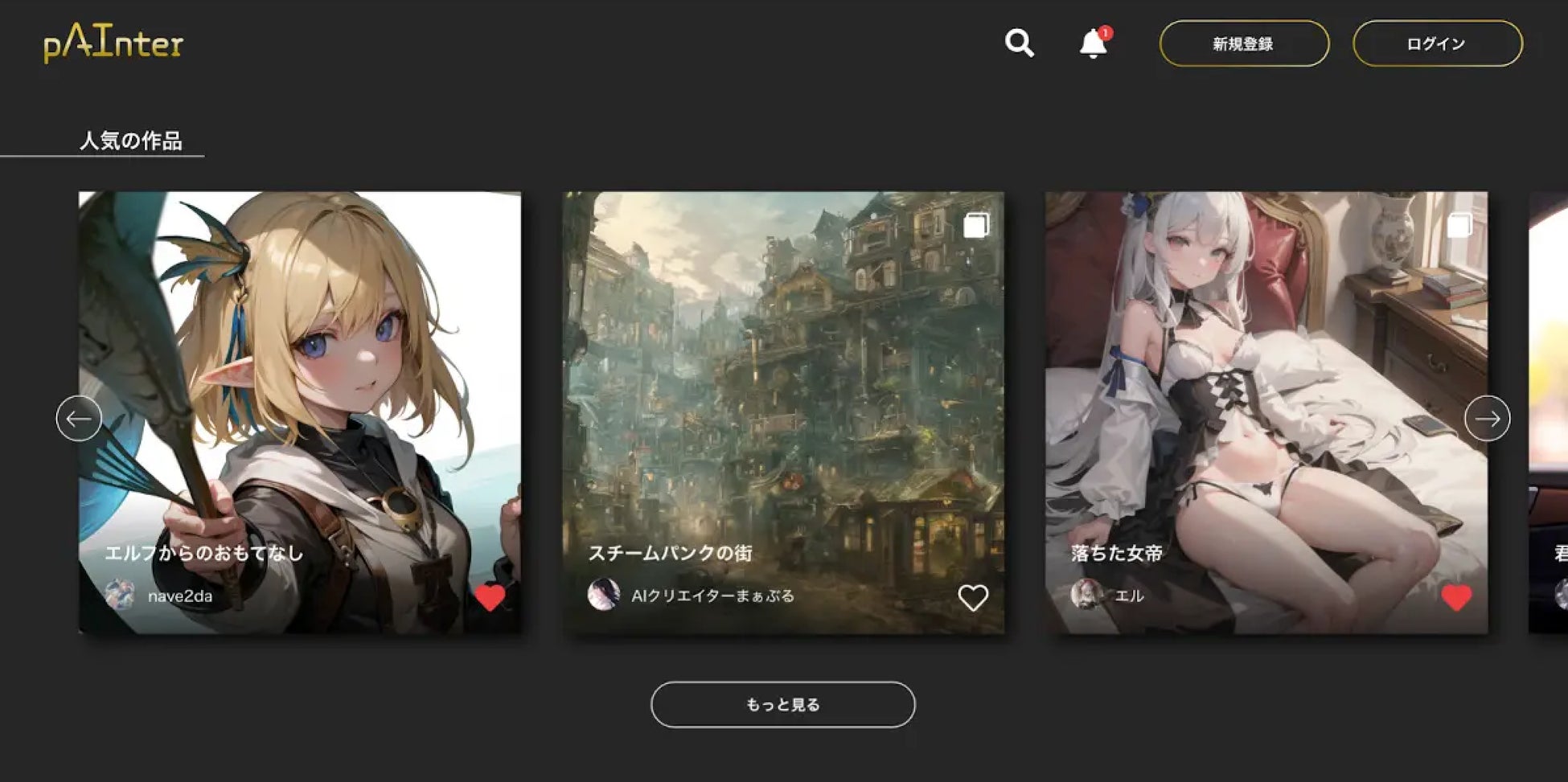 「pAInter」画像生成AIなどにより生成されたAIイラストを投稿できるAI画像に特化した投稿サイトです。クリエイターはご自身の作品を投稿・共有できアトリエとして活用でき、ユーザーは好きなイラストを閲覧・検索できます。すべての機能が無料で利用することができます。