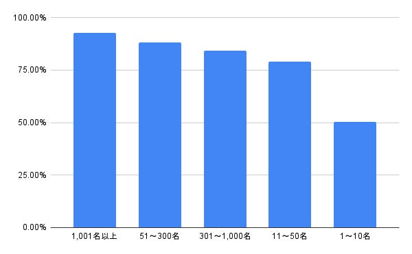 中堅規模では管理機能の整備が不十分なまま組織が拡大し、属人化リスクが高まりやすい。業務フローの標準化とドキュメンテーションの推進が求められる。
