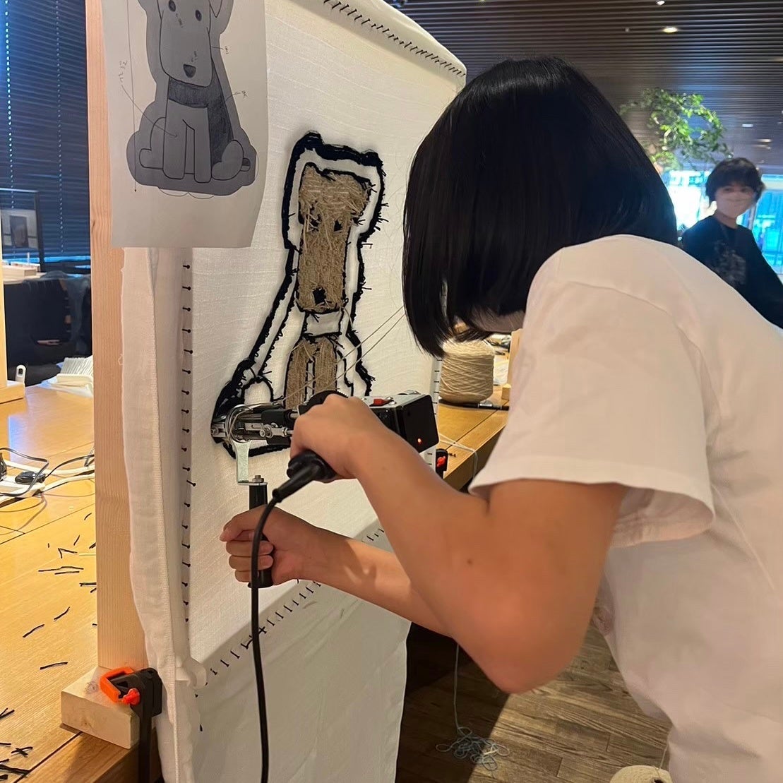 ラグ製造会社と提携し、本格的なタフティングワークショップ(ラグ作り体験)のPOPUPイベントを出張で行っています。