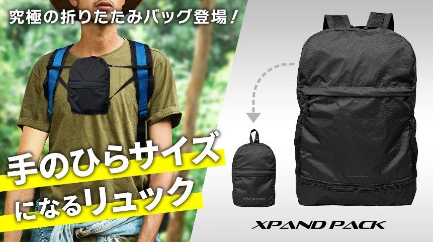 【8つの機能で大容量×コンパクトを実現】 畳めて手のひらサイズにもなる折り畳みリュック 「XpandPack(エックスパンドパック)」